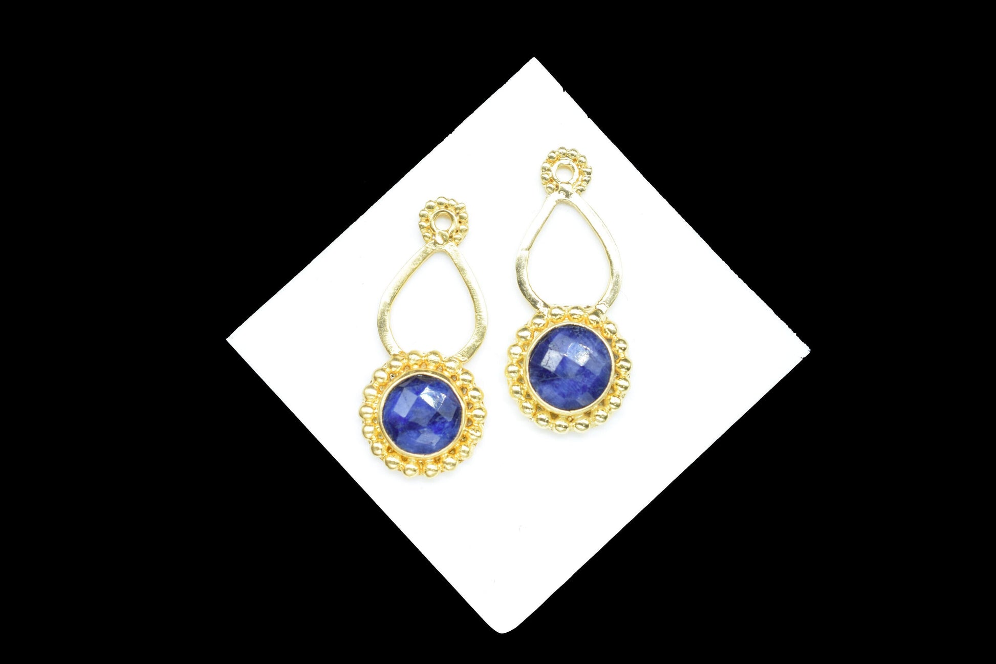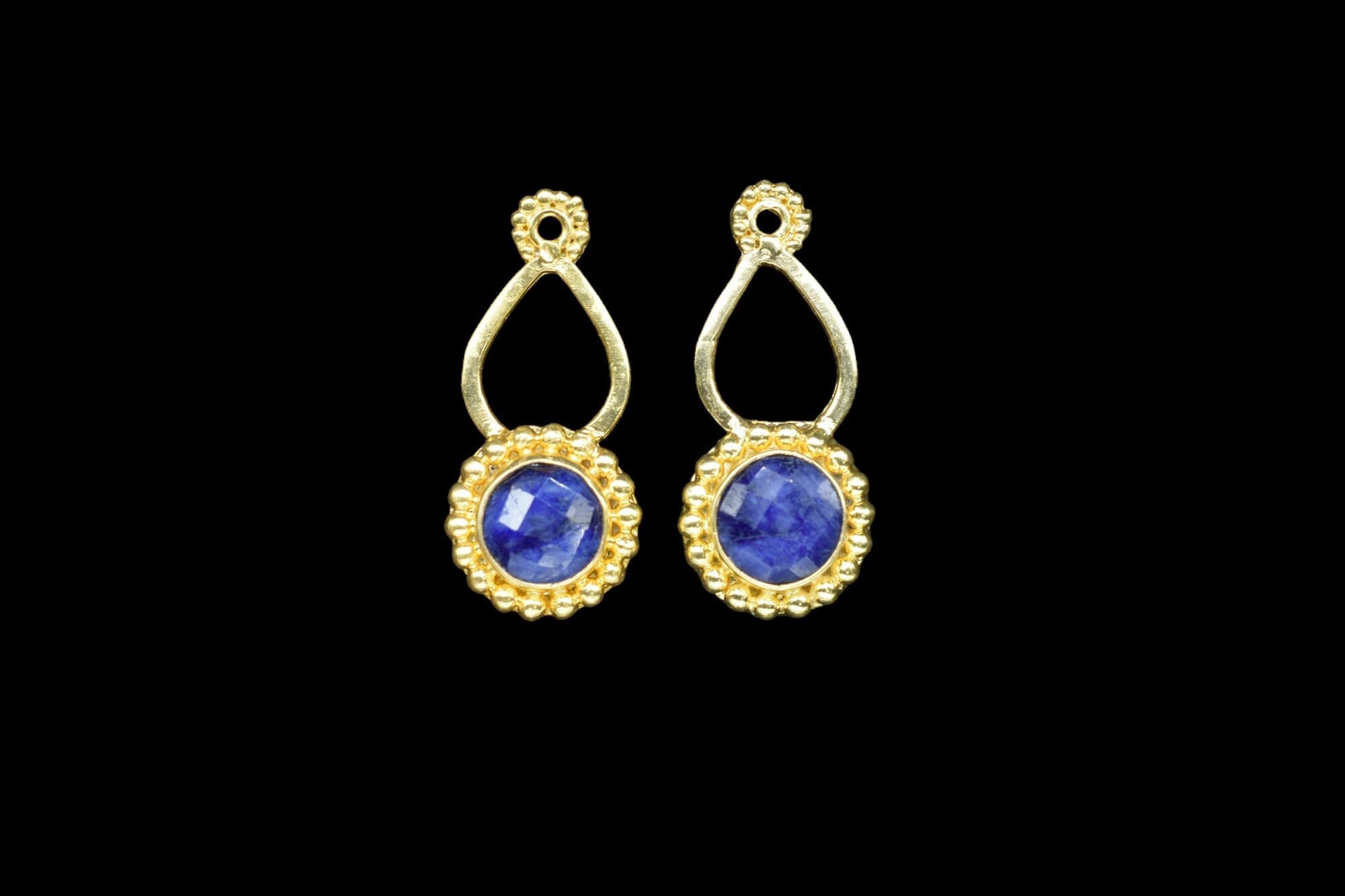Blue Sapphire Designer Pendant/Jewelry making Stone/Sapphire Pendant Charm/Handmade Jewelry Component/Round Shape Stone/Connector/Gift