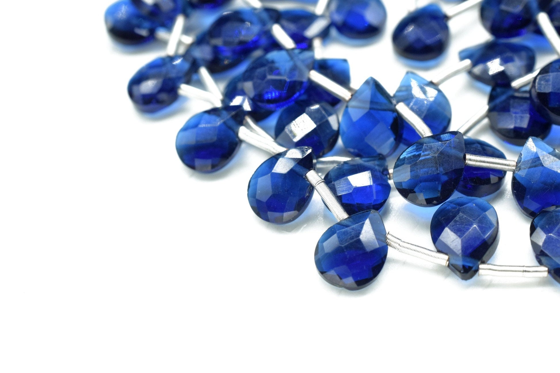 Blue Sapphire Faceted briolette Strand,Blue Sapphire Beads Strand,Handmade Jewelry Making Supplies,Gemstone drilled Teardrop Briolettes,Gift