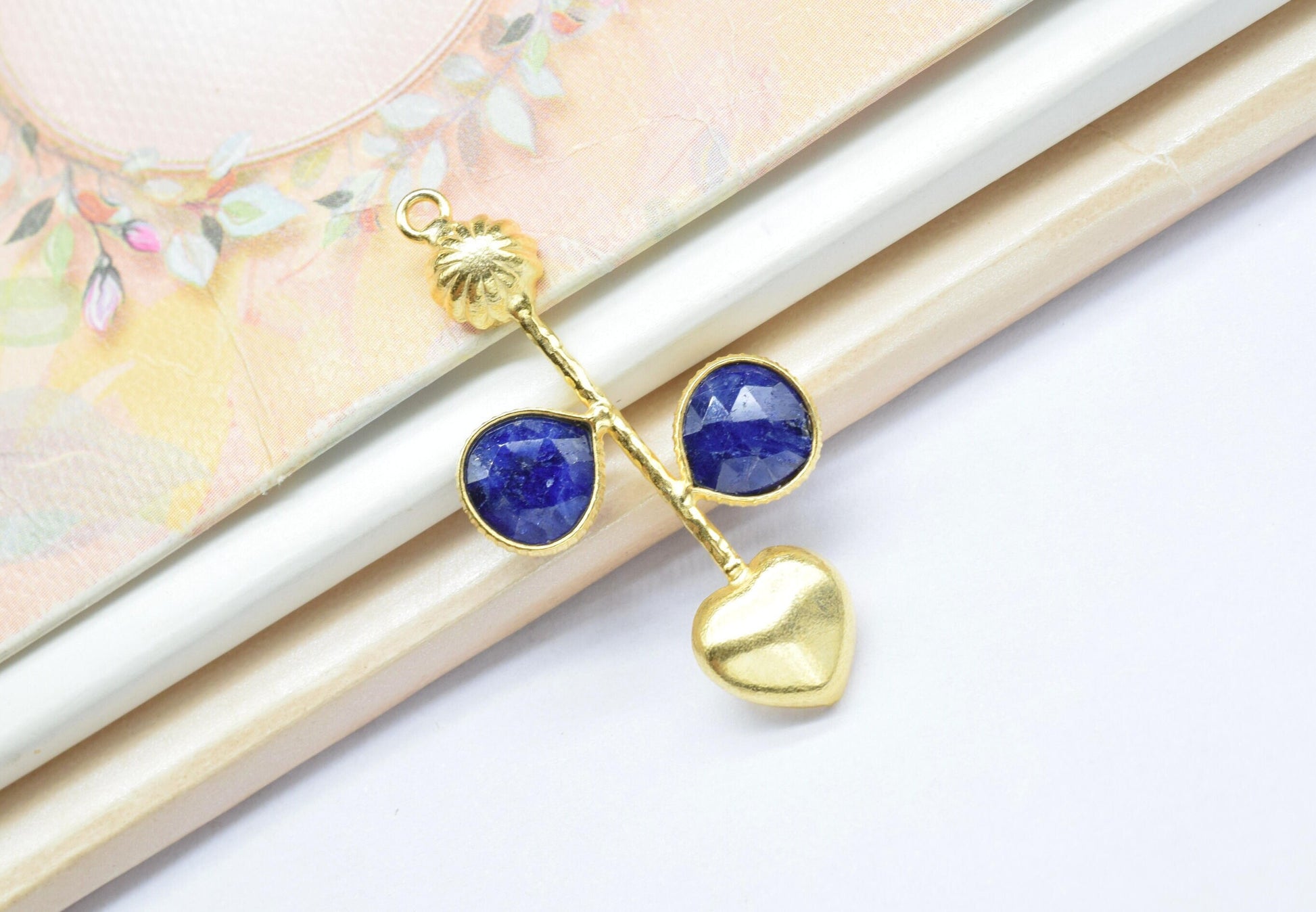 .Blue Sapphire Pendant/Gemstone Component/Faceted Cut Sapphire /Single Bail Charm/Necklace Pendant/Heart Shape Charm/Wholesale Supply/Plated