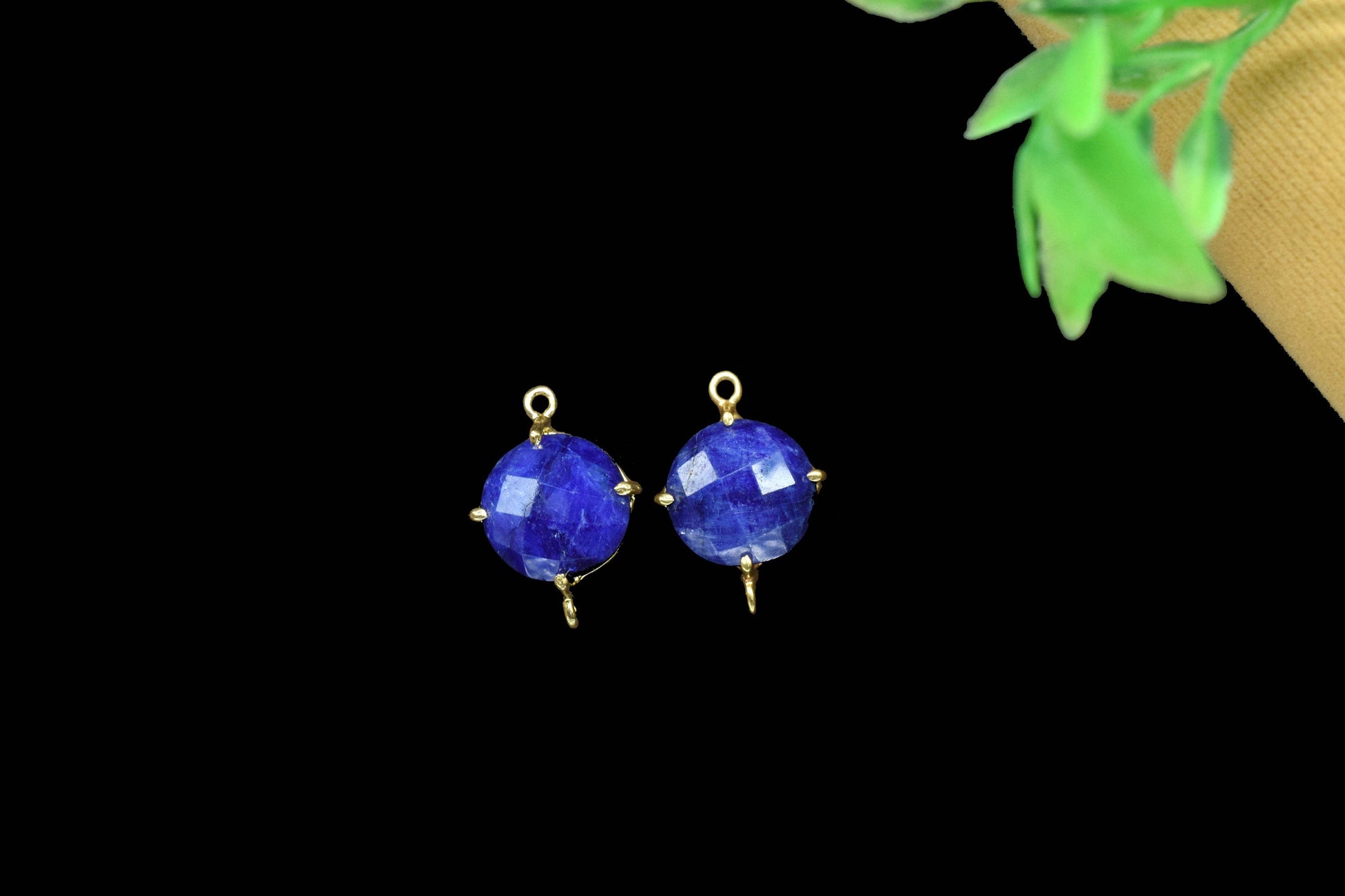 .Blue Sapphire Round Connector,Charm for bracelet necklace Jewelry Making,Handmade Gemstone Bezel,Beads Prong Jewelry,double bail connector