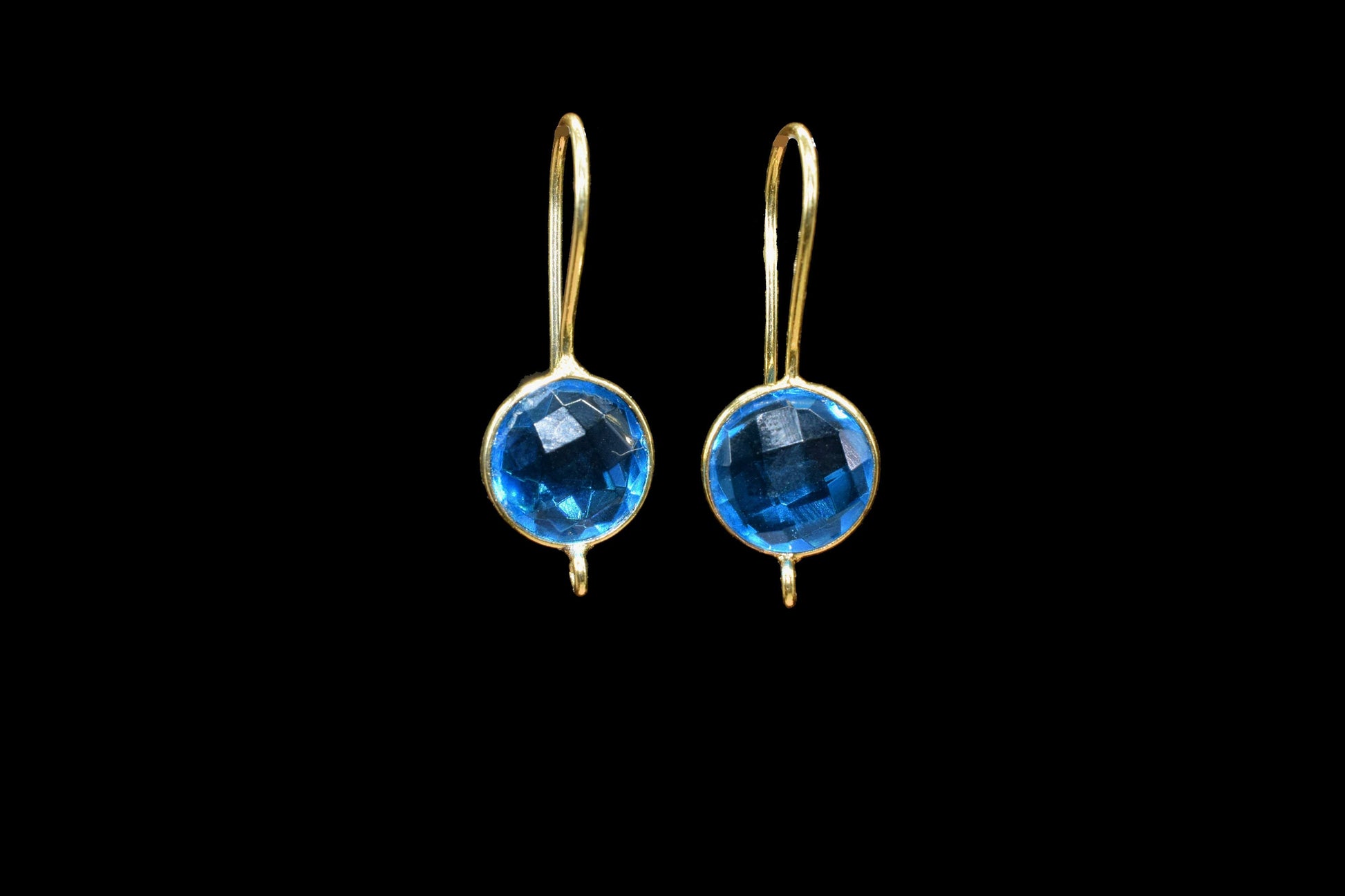 .Blue Topaz 10mm Round Shape Earrings,Topaz Gemstone bezel Component,Blue Topaz Bezel Connector, Topaz Bezel Earring,Topaz Connector Jewellery