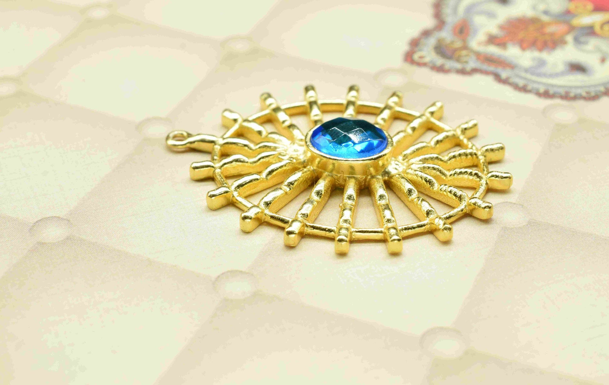 .Blue Topaz Gemstone Component Single Bail Charm, Blue Topaz Connector Pendant, Gold Plated Connectors ,Pendant Jewelry, Earring Component