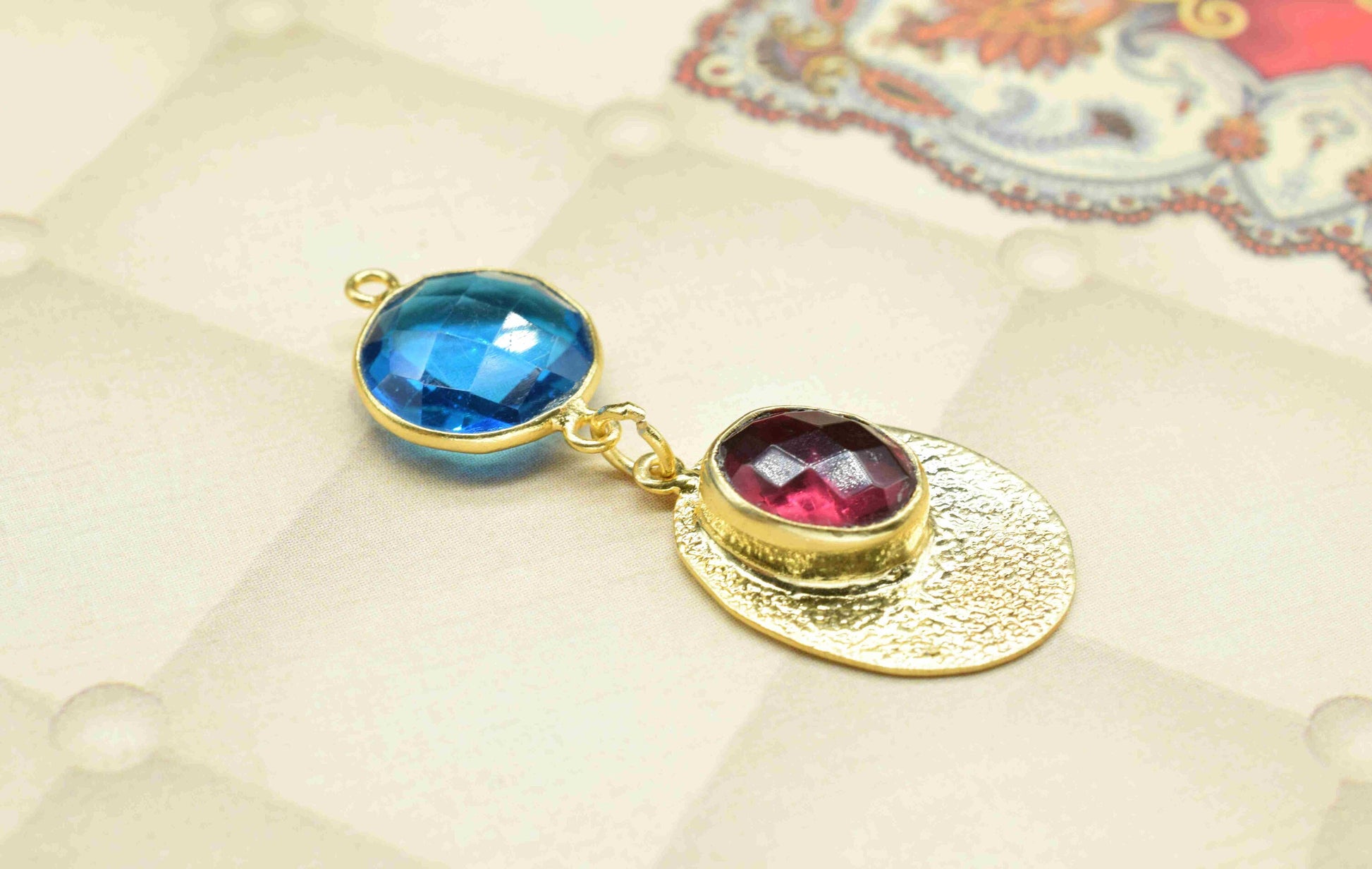 Blue Topaz Pendant Charms , Pink Tourmaline Dangle Earring Component , Multi Gemstone Dangle Earring , Component Jewelry , B'day Gift