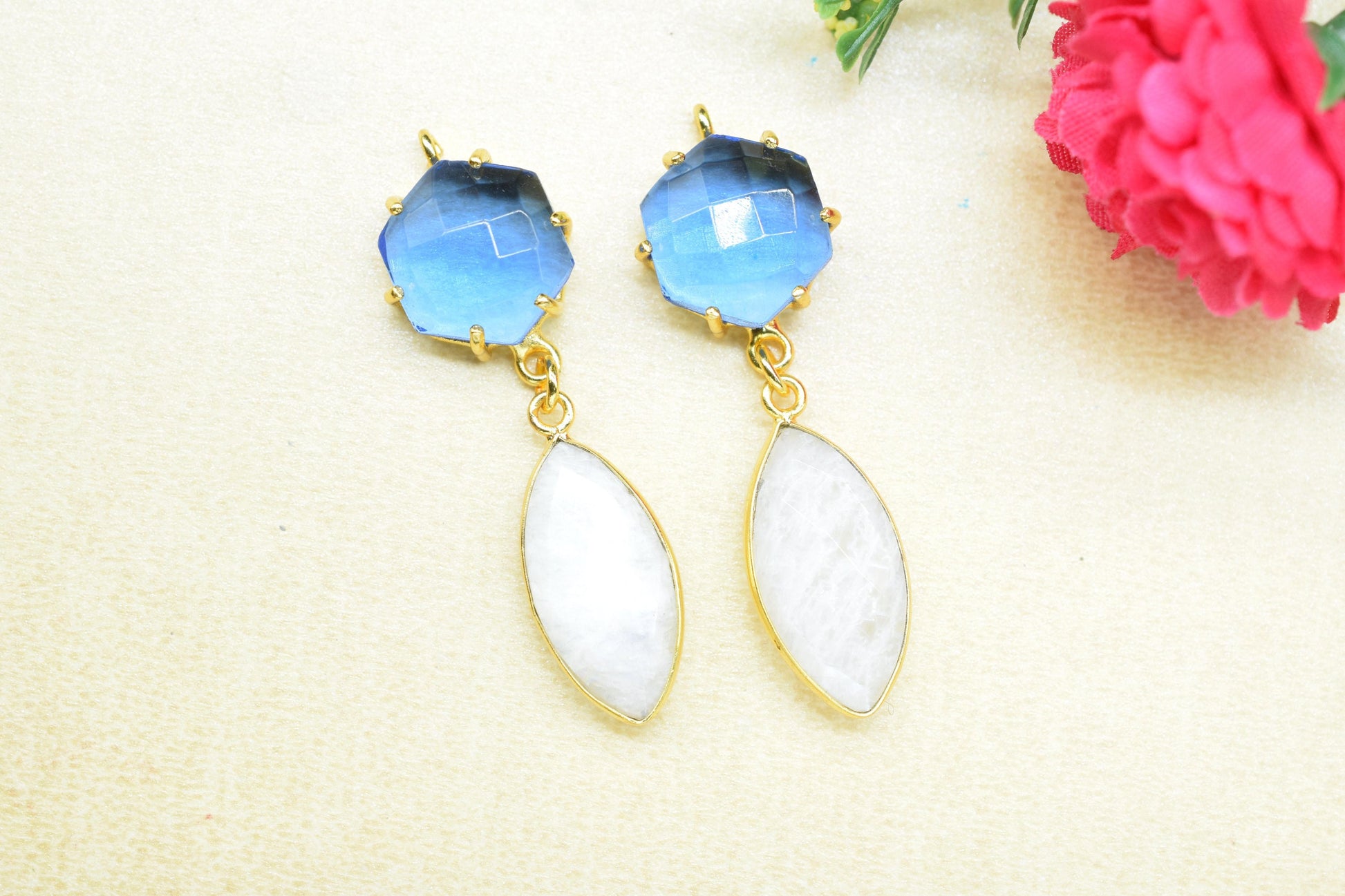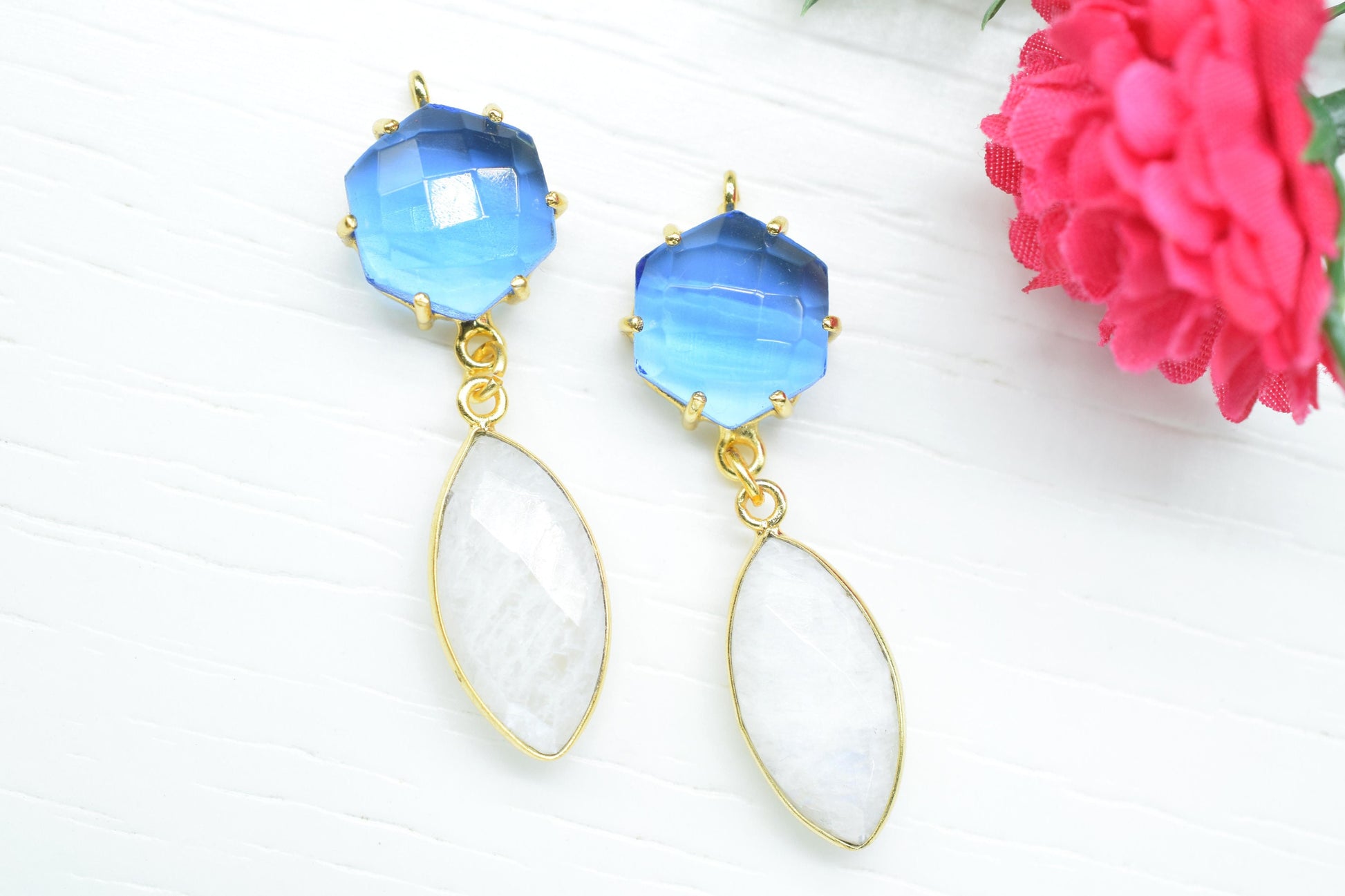 .Blue Topaz Prong Bezel Charms Connector/Blue Topaz Prong Bezel Charms Connector/Station Bezel Link Pendant/Handmade Jewelry/Women Jewelry
