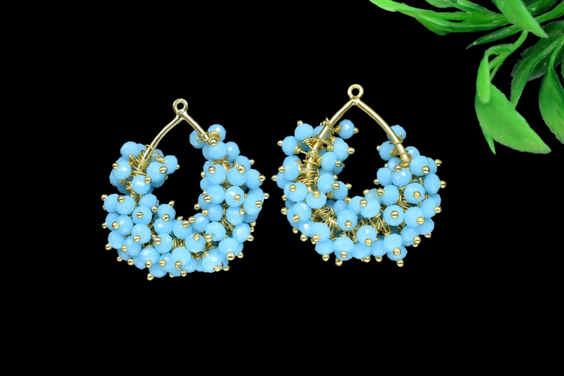 Blue Turquoise Pendant Charms,Handmade Beaded Charms Necklace,Pendant Jewelry Supply,Wire Wrapped Gemstone Component,Vermeil Dangle Earring