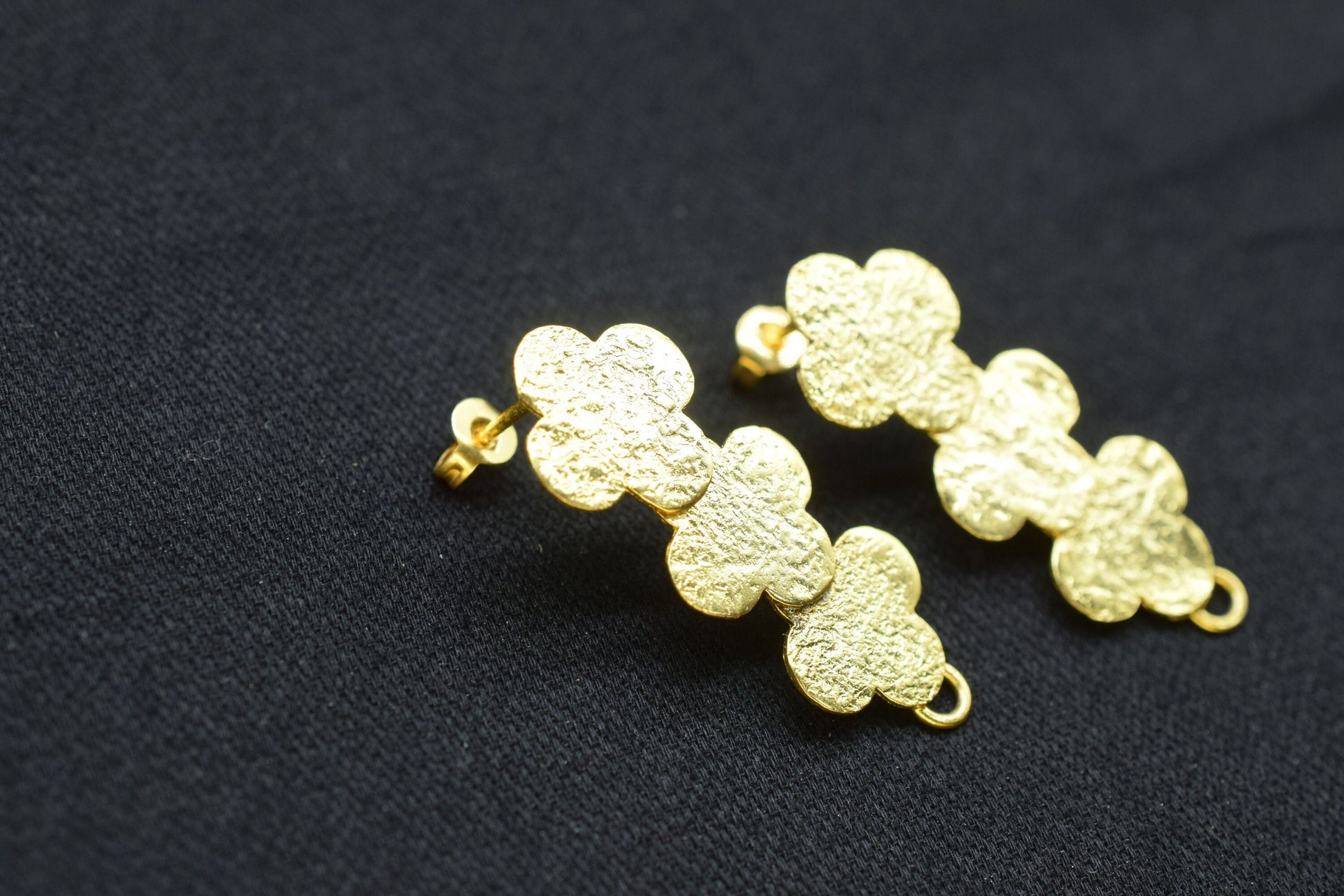 Brass Earring Connector,Clover Shape Earring charms,Gold Plated Brass Jewellery,Earring Post connector,Brass Earring parts,Earring connector