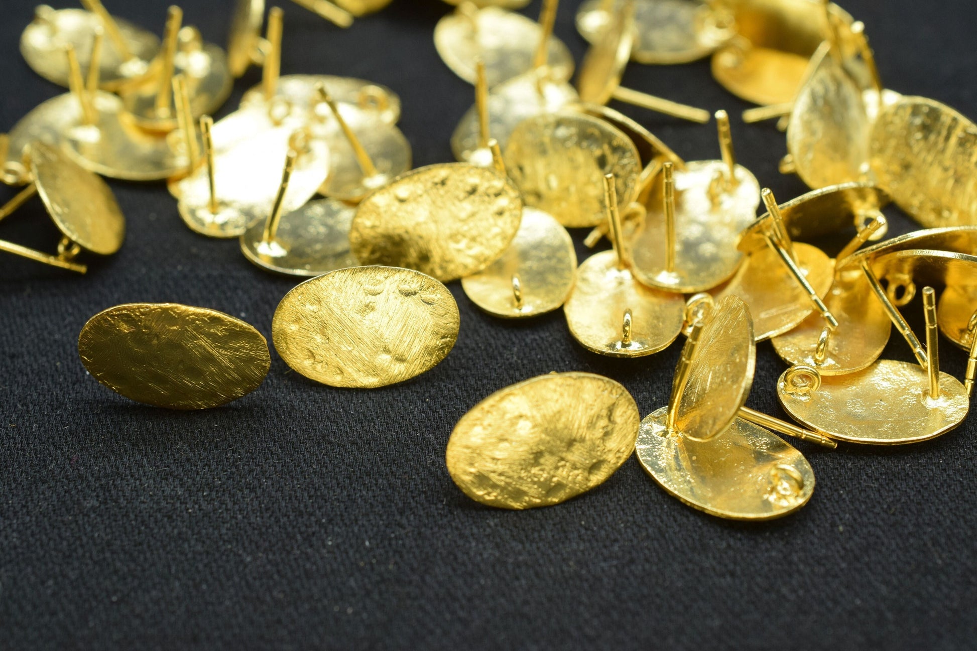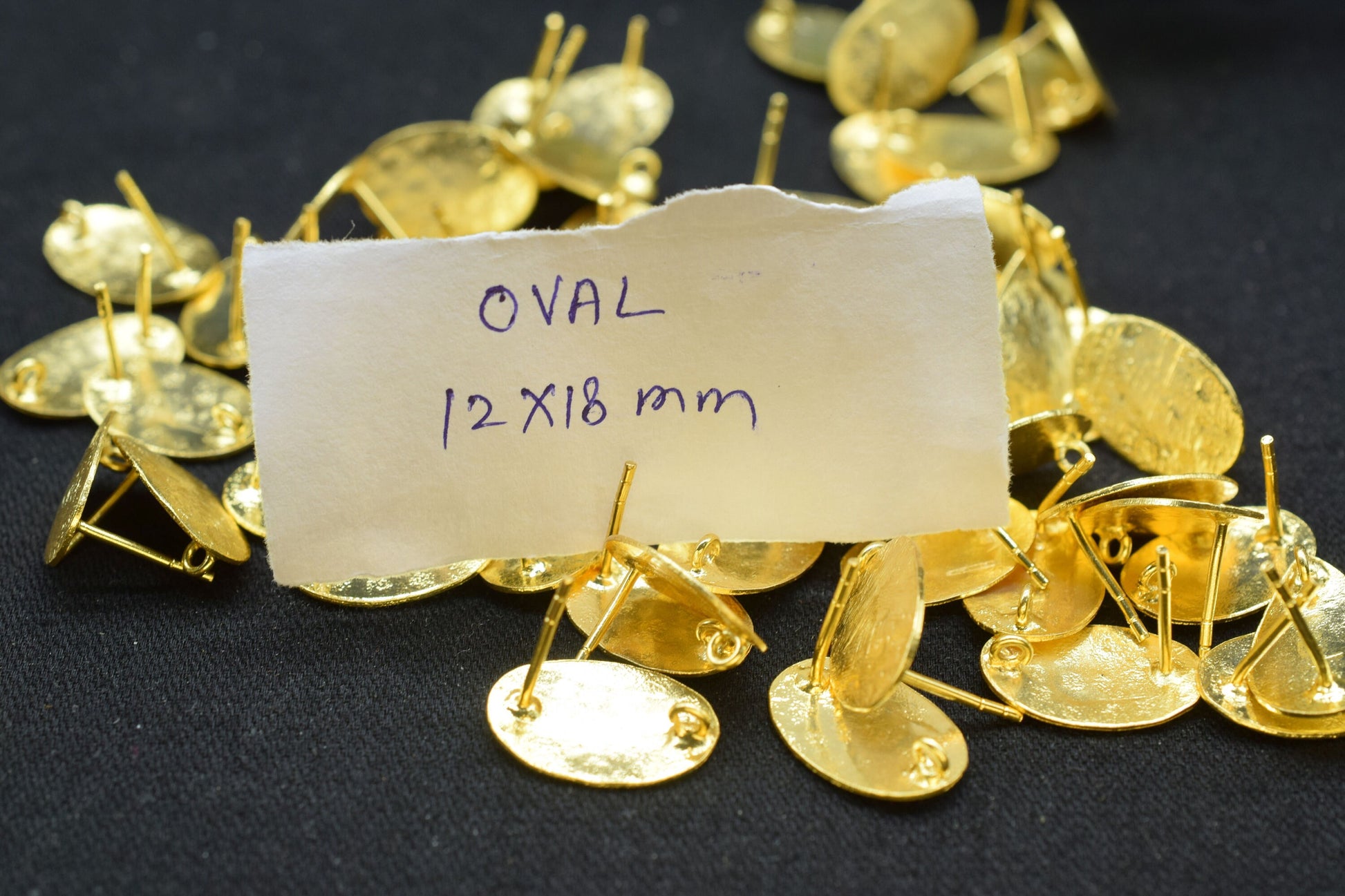 Brass Handmad Earring Connector,12x18mm Oval Shape Brass Earring connector,Gold Plated Brass Jewellery,Studs Post connector,Brass Earring,