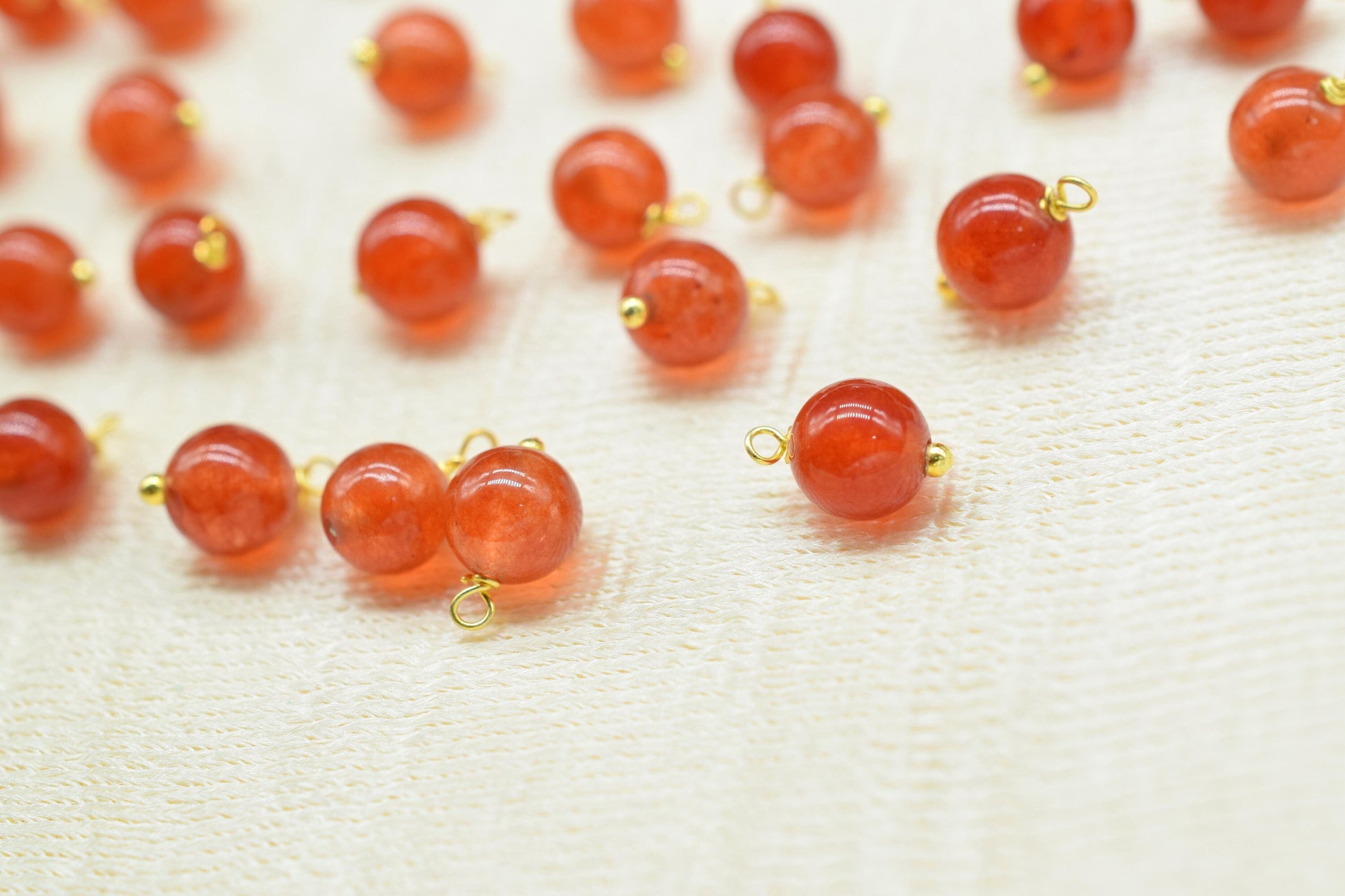 Carnelian 6mm Round Smooth Beads/Earring Components/Carnelian Single wire wrapped Beads/Round Beads Connector/Gemstone Beads/Gift