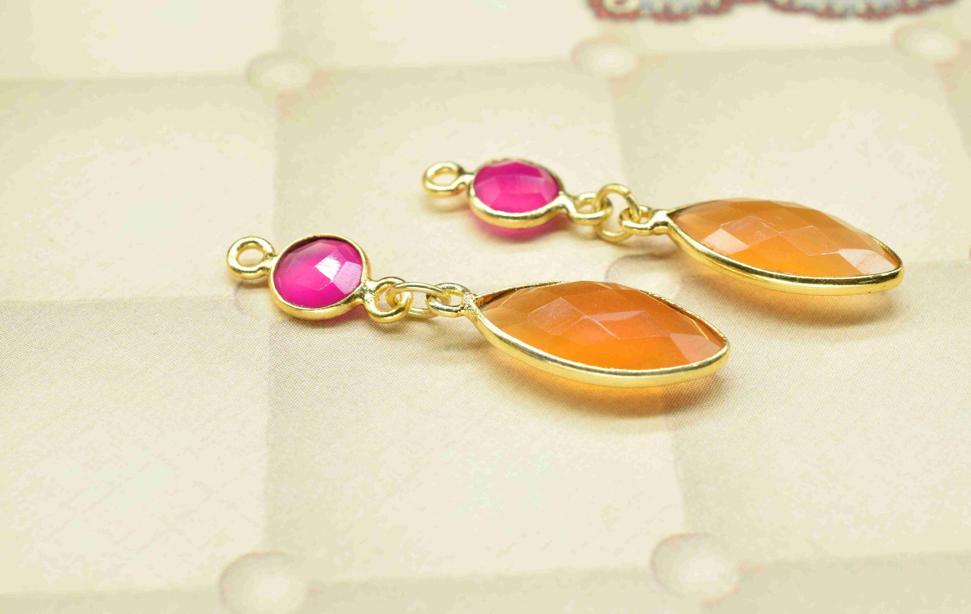 Carnelian Dangle pendant Charms,Hot chalcedony Connector,Handmade jewelry,Component pendant,Station Bezel Link,Multi Gemstone Dangle Earring