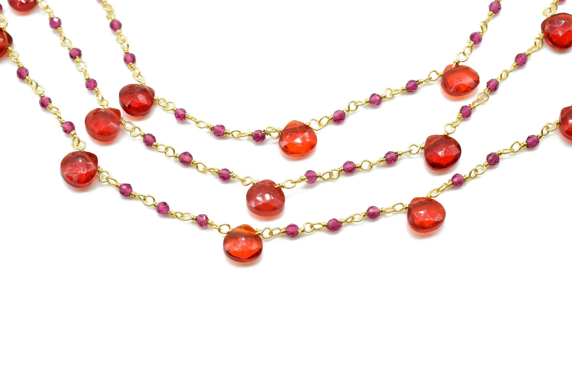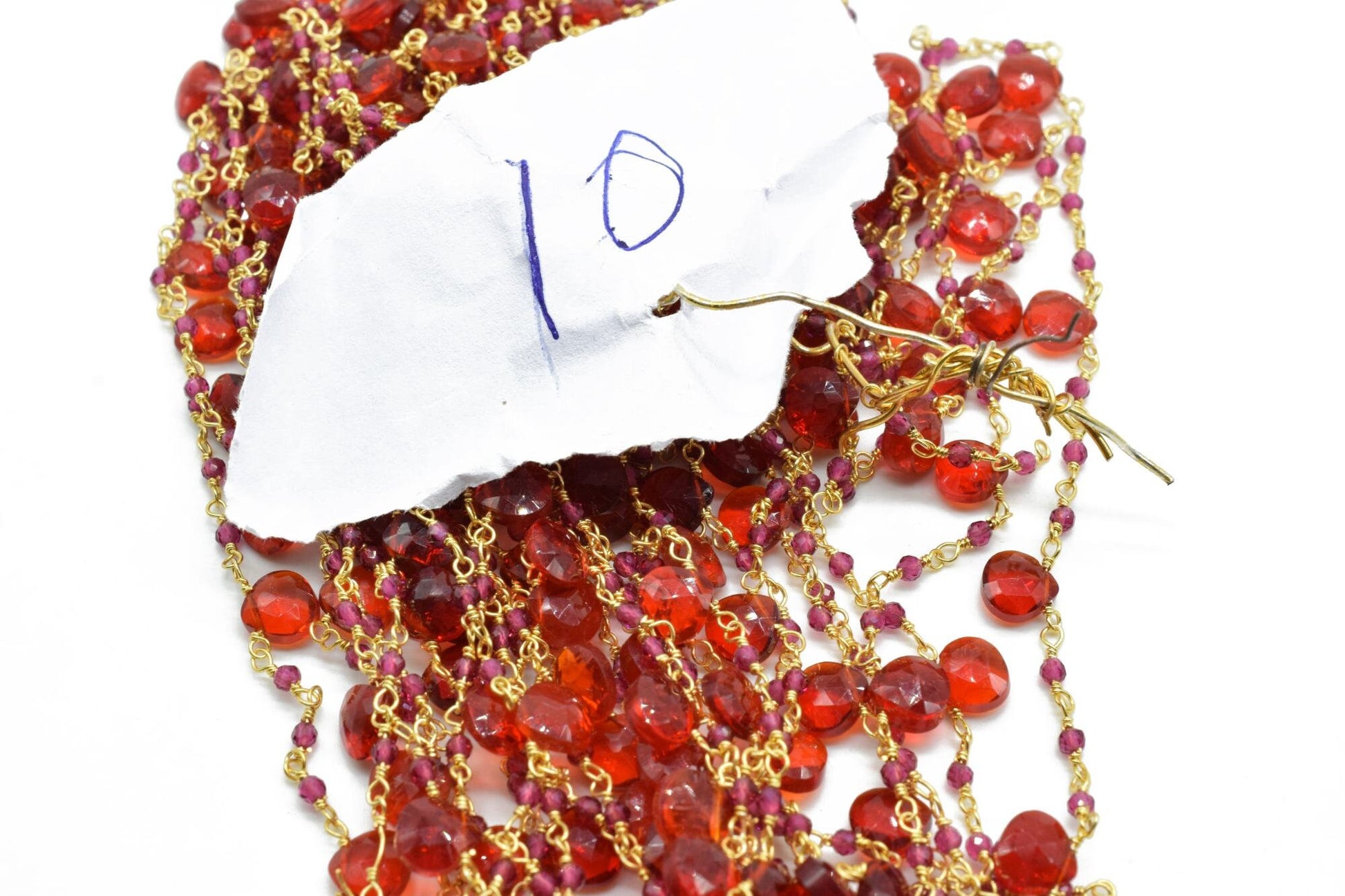 Carnelian,Pink chalcedony 2mm Beaded & Heart shape Chain,Beaded Wire Wrapped Gemstone Beads,Faceted Rosary Chain,Gemstone rosary style chain