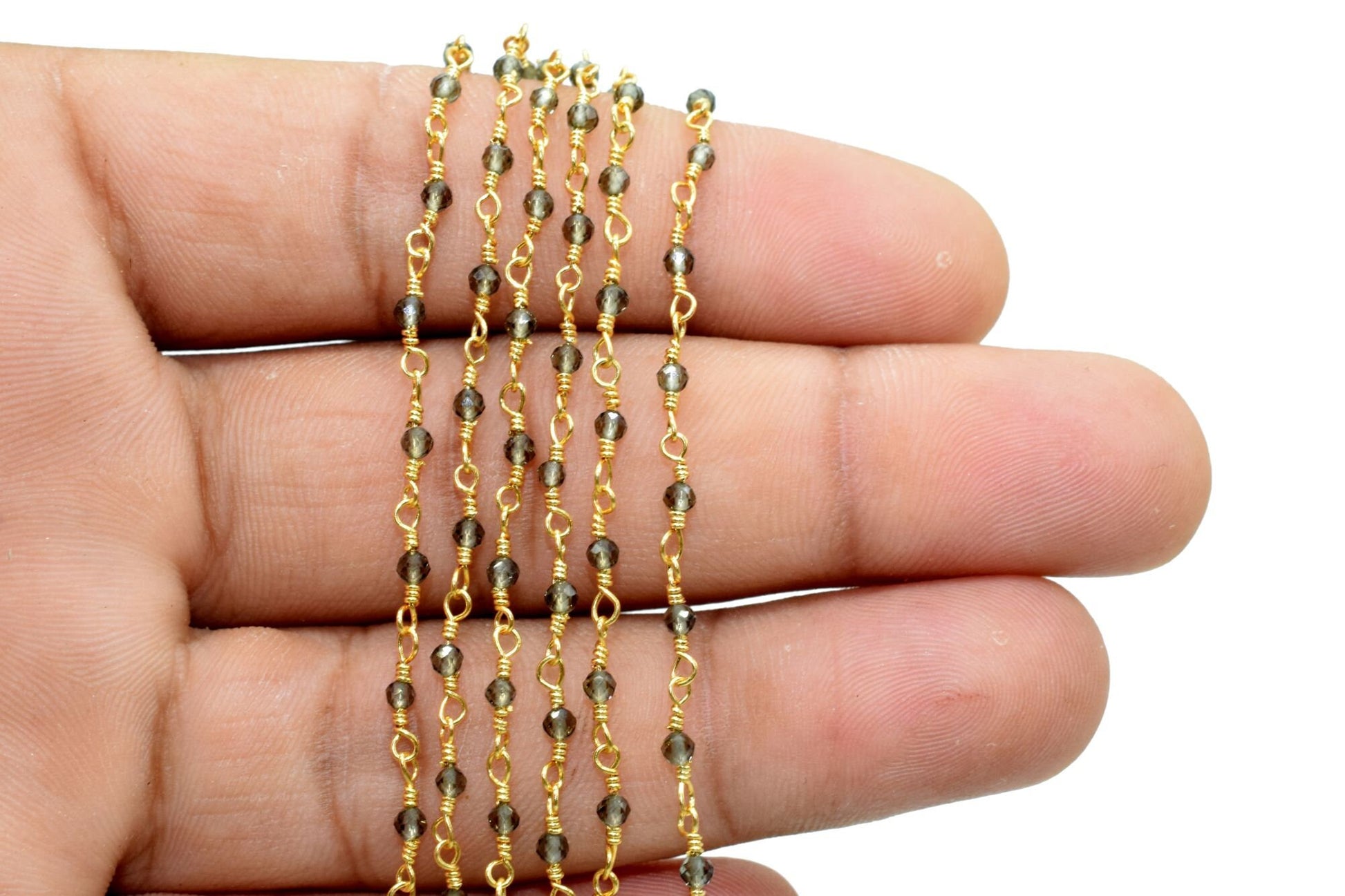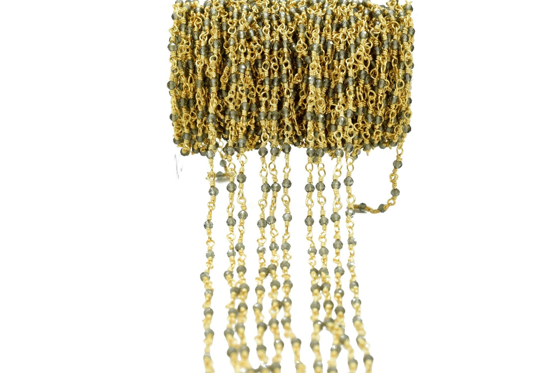 Cat's Eye 2mm Rosary Beaded Chain,Cat's Eye Faceted Bead Wire Wrapped Chain,Brass chain,Jewelry Making Chains,Cat's Eye Beaded Chain Jewelry