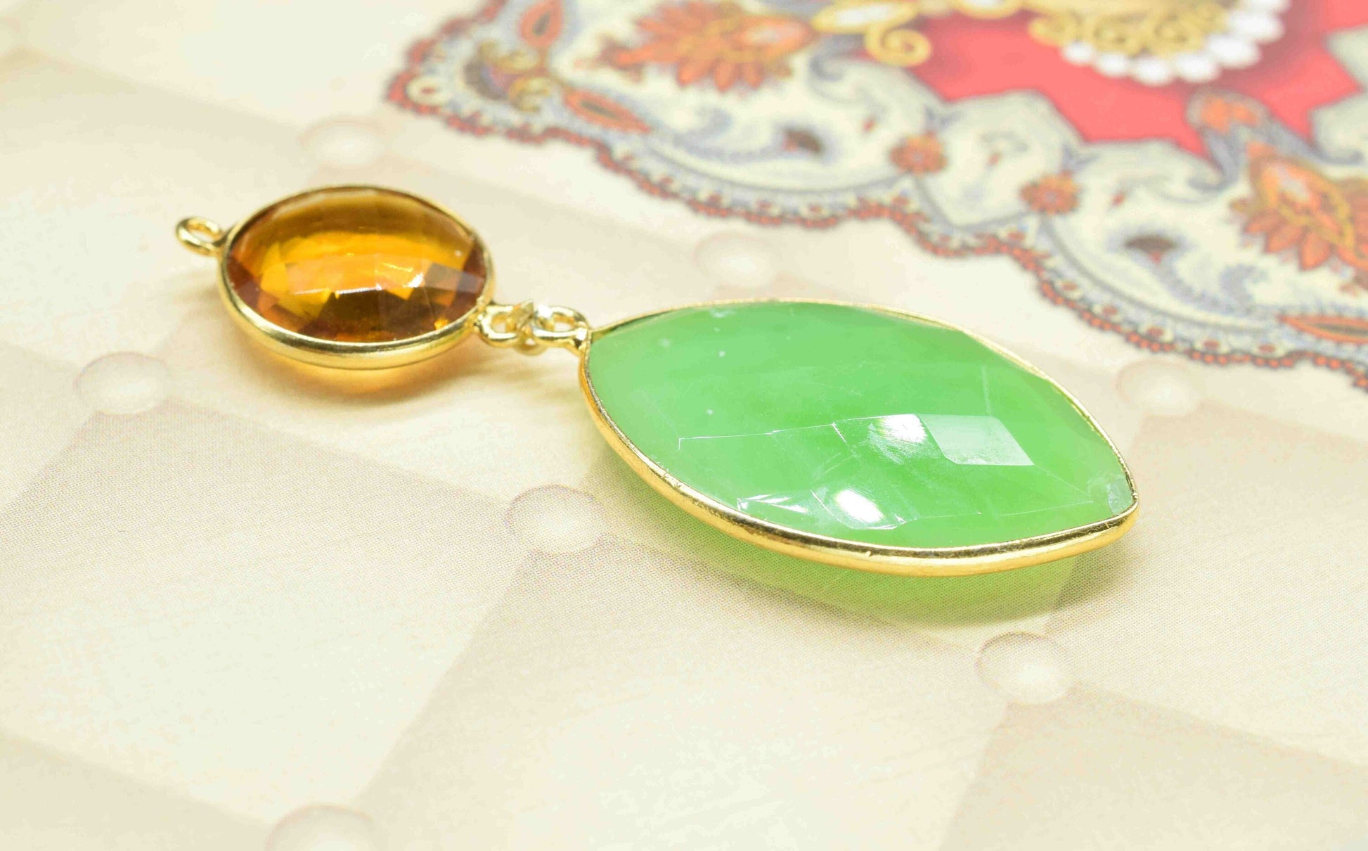 .Chrysoprase + Citrine Component Pendants , Multi Stone Dangle Earrings ,Marquise Shape Pendant Jewelry ,Dangle pendant Charms, B'day Gift