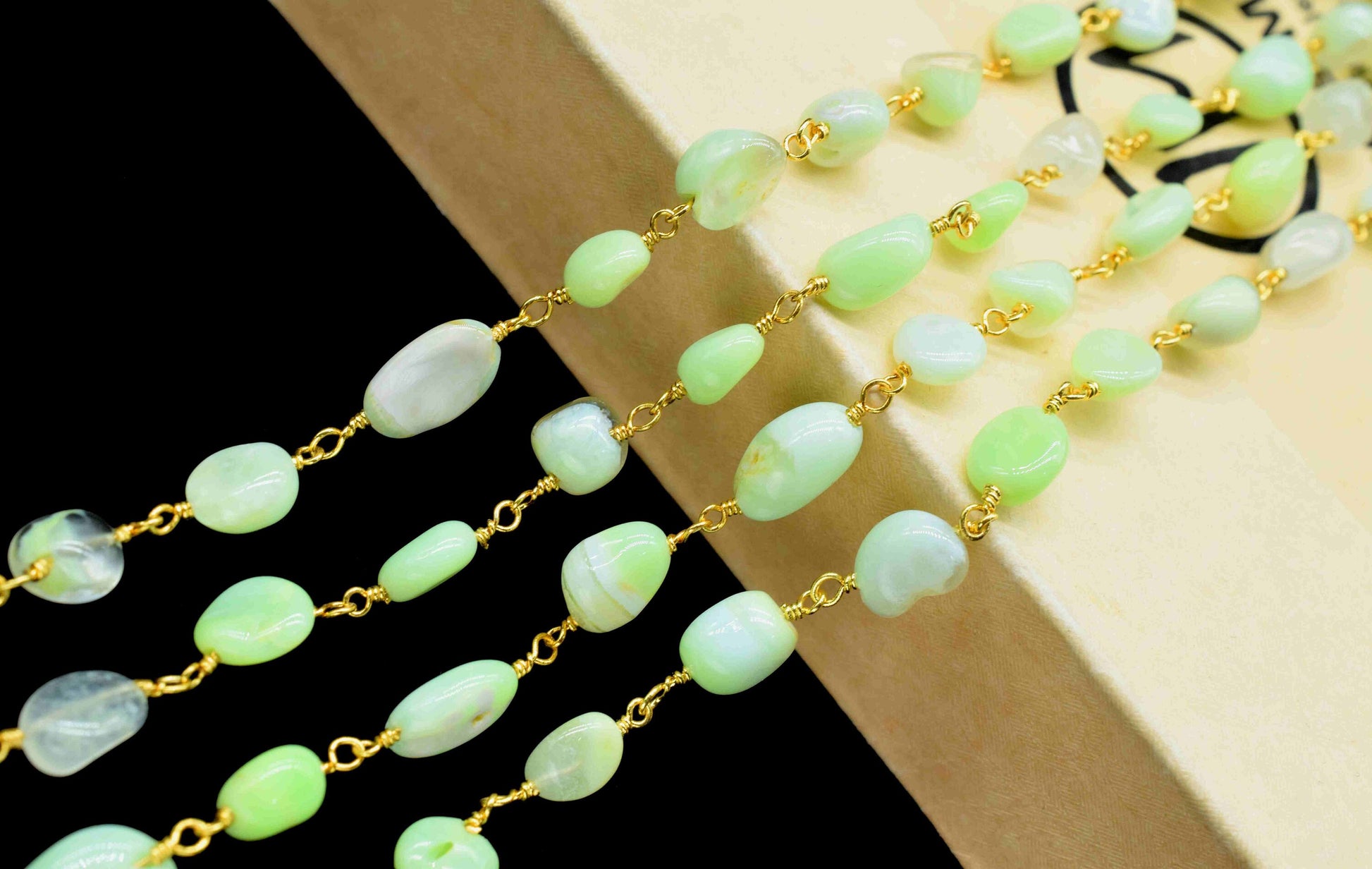 Chrysoprase Gemstone Oval Shape Smooth Bead Chain,Chrysoprase Wire Wrapped Gold Plating rosary,Chrysoprase Beads Link Chain Jewelry,Gift