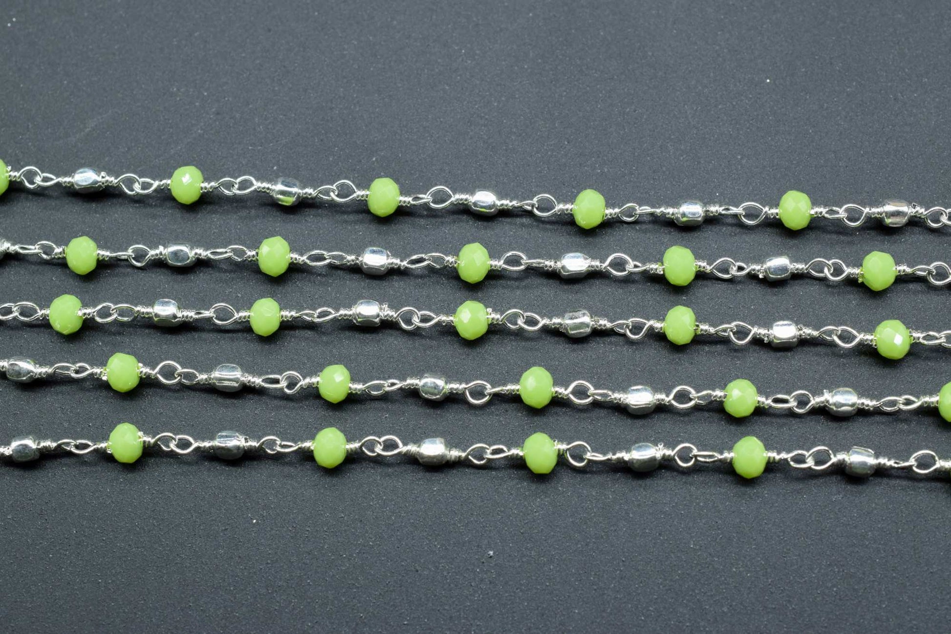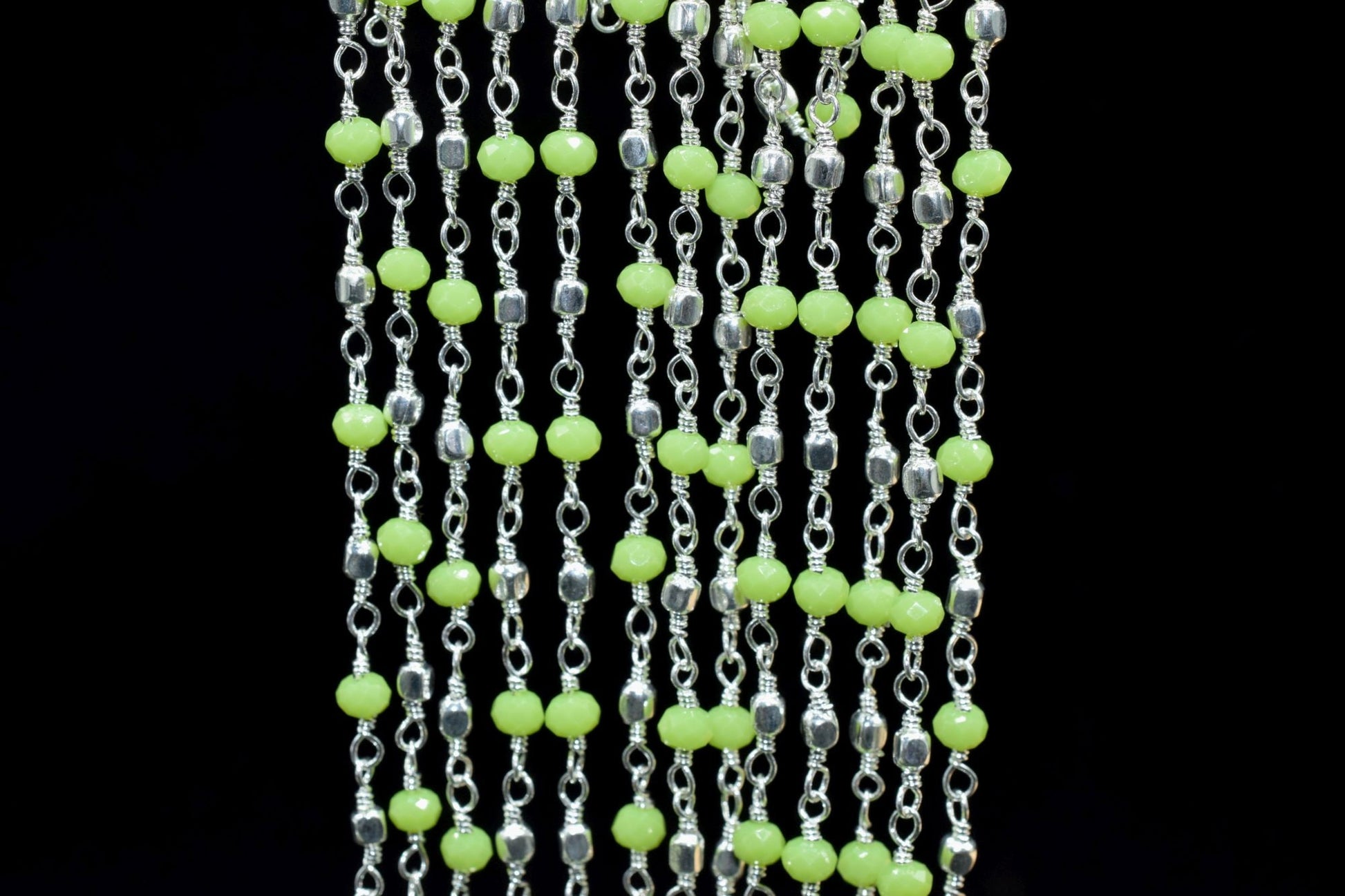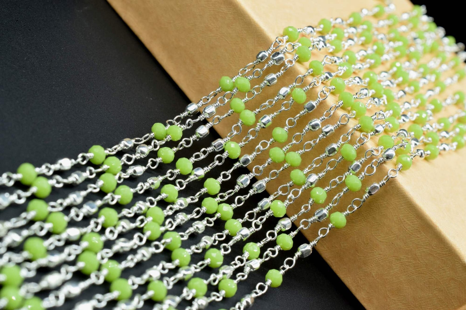 Chrysoprase Wire Wrapped Beaded Chain,Rosary Style Chain,Jewelry Supplies,Bulk Rosary Roll,Green Gemstone Rosary,chrysoprase Rosary Roll,