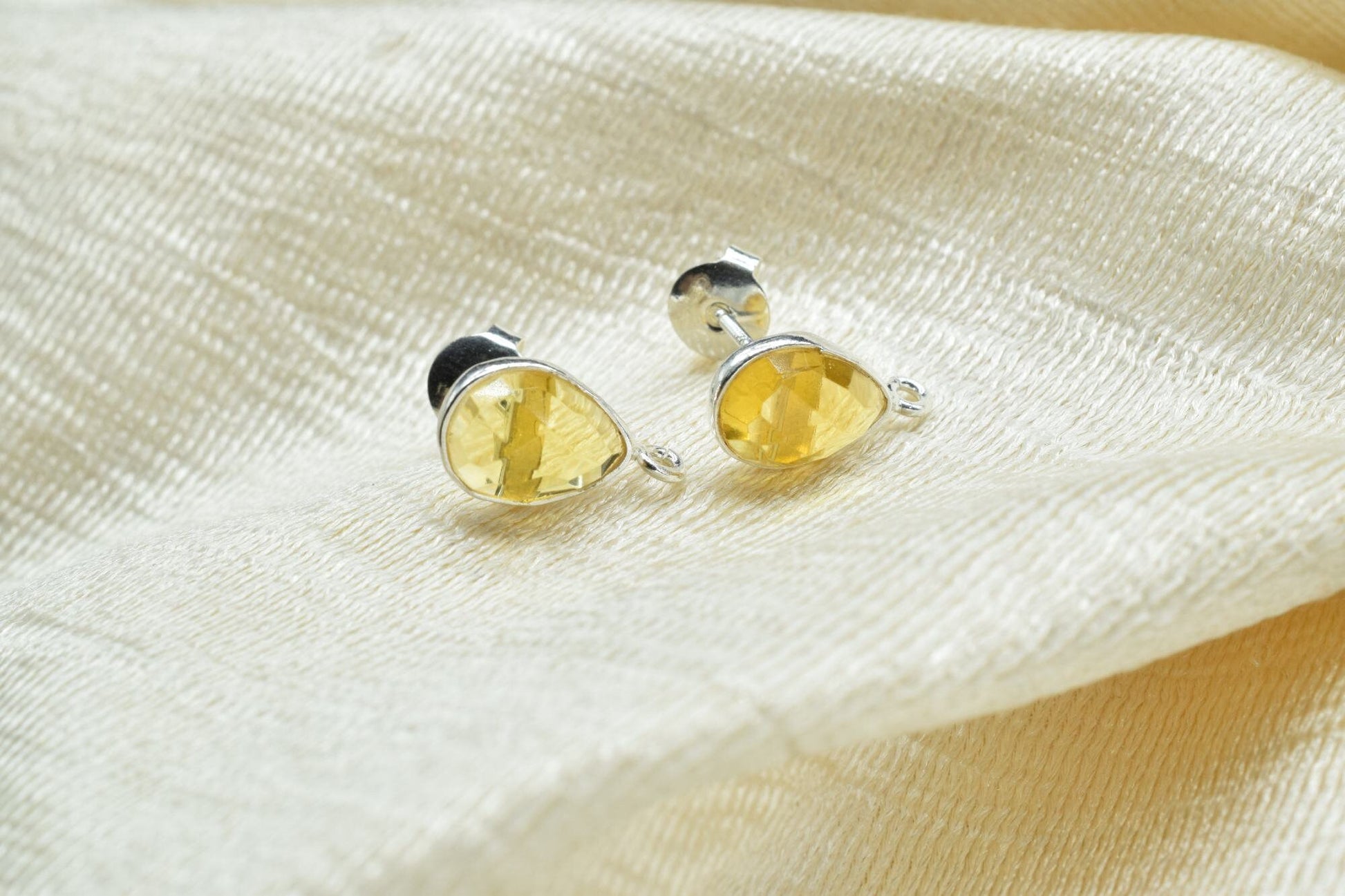 Citrine 7x10mm Teardrop shape Earring connector Stud post setting with loop open bail, Citrine Silver Plated Earring With Loop