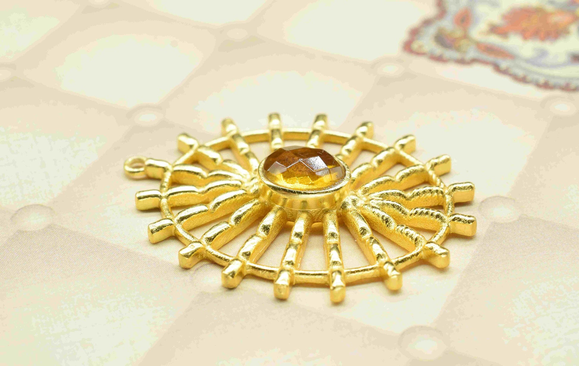 .Citrine Gemstone Component Single Bail Charm, Citrine Connector Pendant ,Finding Gold Plated Connectors ,Pendant Jewelry, Earring Component