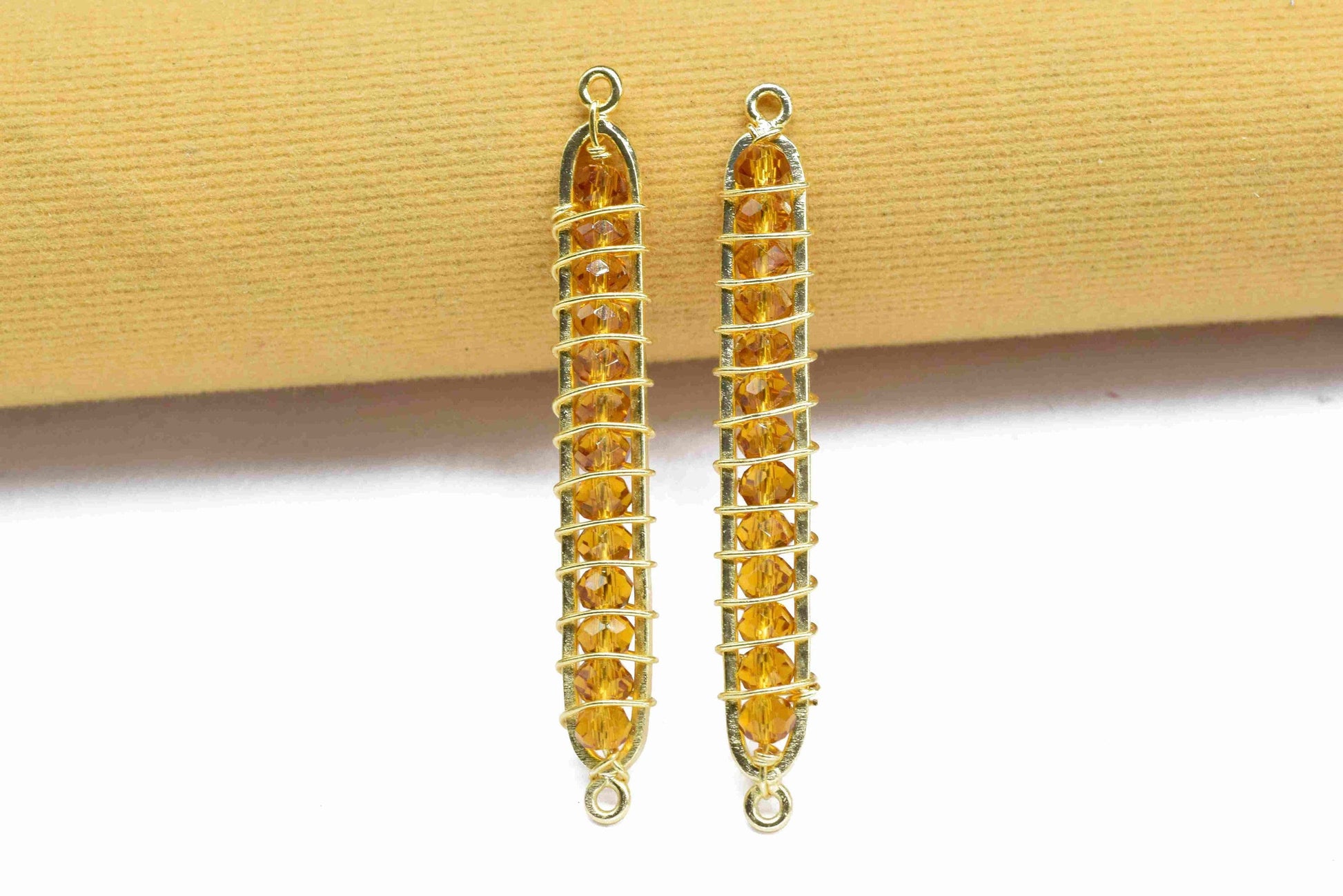 .Citrine Quartz beaded Bar Finding Connector,Gemstone Bar Pendant Necklace,Bar Bracelet,Beaded Bar Finding Component,Citrine Quartz jewelry