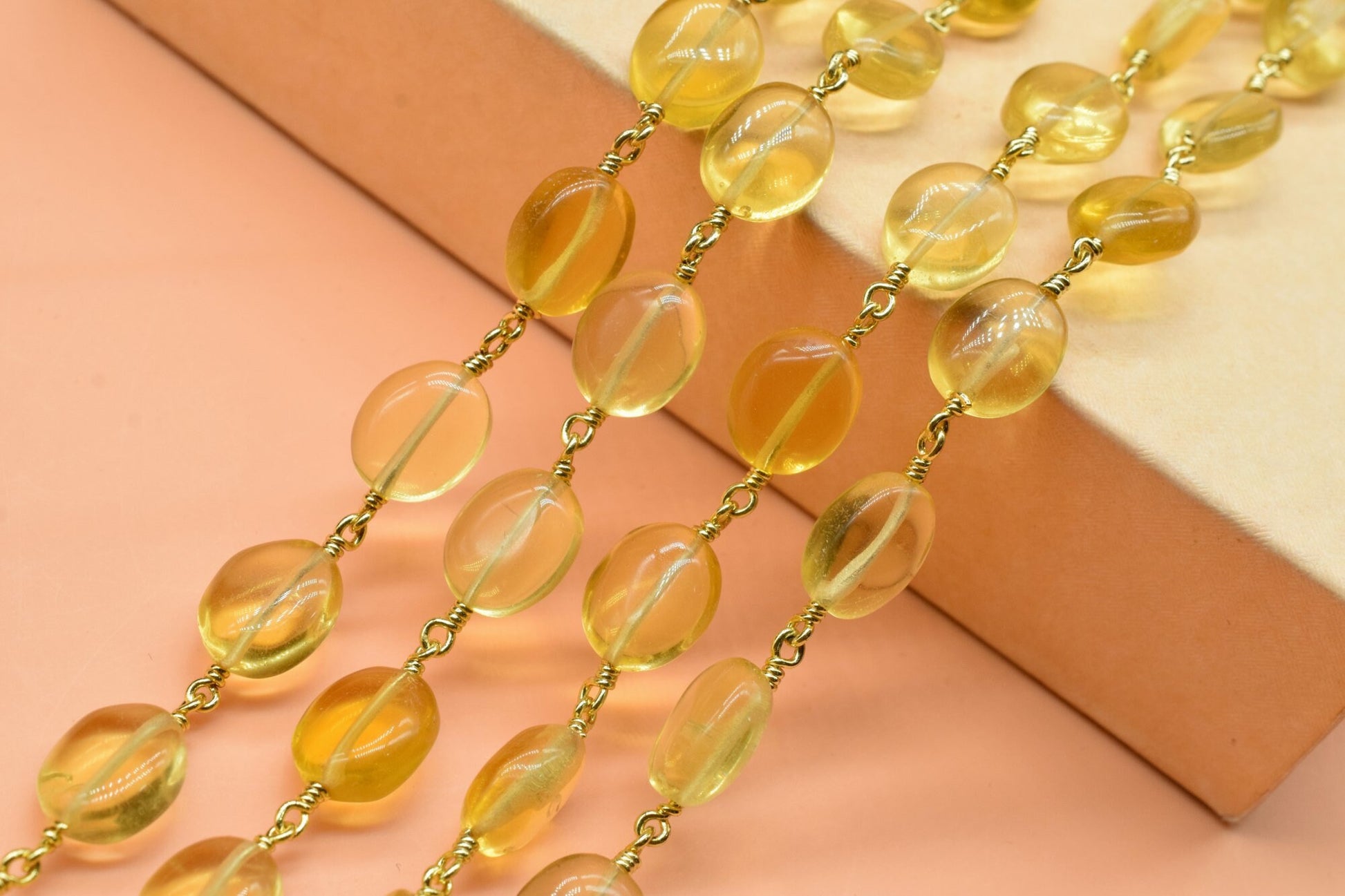 Citrine Smooth oval Rosary Beaded Chain,Citrine Oval Wire Wrapped Rosary Chain,Gold Plated wire wrapped Rosary Chain Gemstone Jewelry Making
