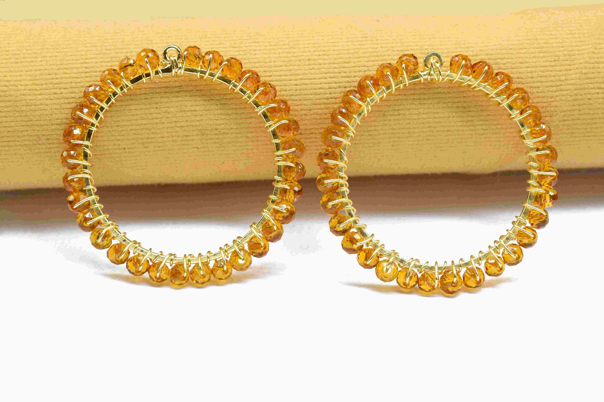 .Citrine Wire Wrapped Dangle Connectors,Circle Pendant Components,Handmade Earring,Beaded Hoop Earring,Finding Component Citrine Jewellery,Gift
