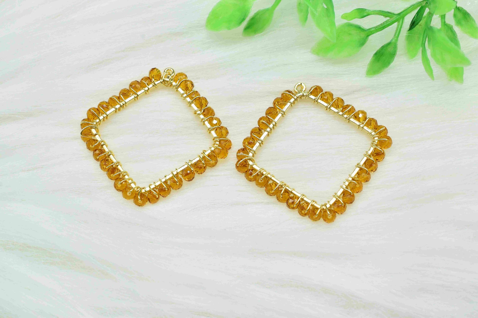 .Citrine Wire Wrapped Dangle Connectors,Square Pendant Components,Handmade Earring,Beaded link Earring,Finding Component Citrine Jewellery,Gift