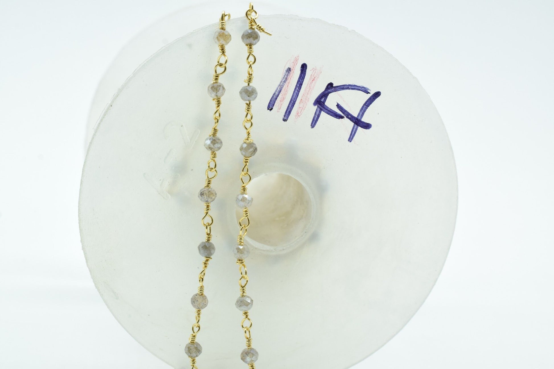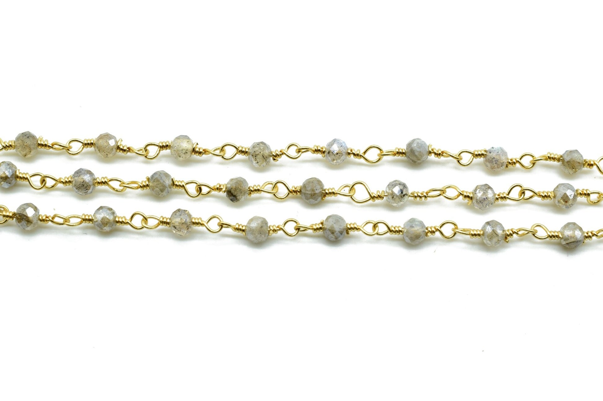 Coated Labradorite 3mm Beaded Chain,Blue Fire Labradorite Rosary Chains,Gold Plating Wire Wrap Chain,Brass chain,Jewelry Making Chain,Rosary