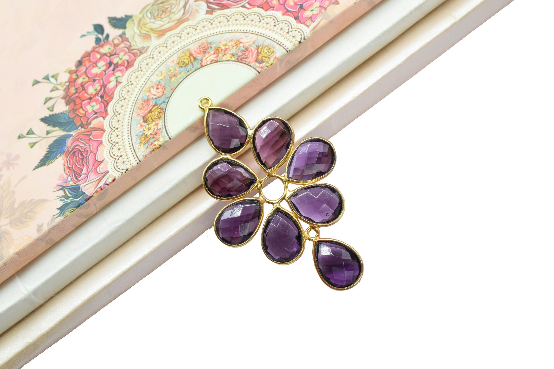 Components Earring Connectors,Craft Supplies,Handmade Pendant Beads Jewelry,Teardrop Station Bezel Link Pendants,Gemstone Flower Pendant