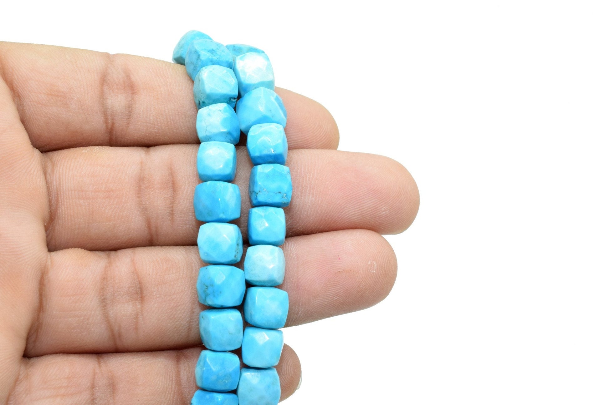 Copper Turquoise Faceted 7mm Cube Beads,Genuine Natural Blue Turquoise,Micro Faceted Laser Diamond Cut 8" Strand,Turquoise Rectangle Nuggets