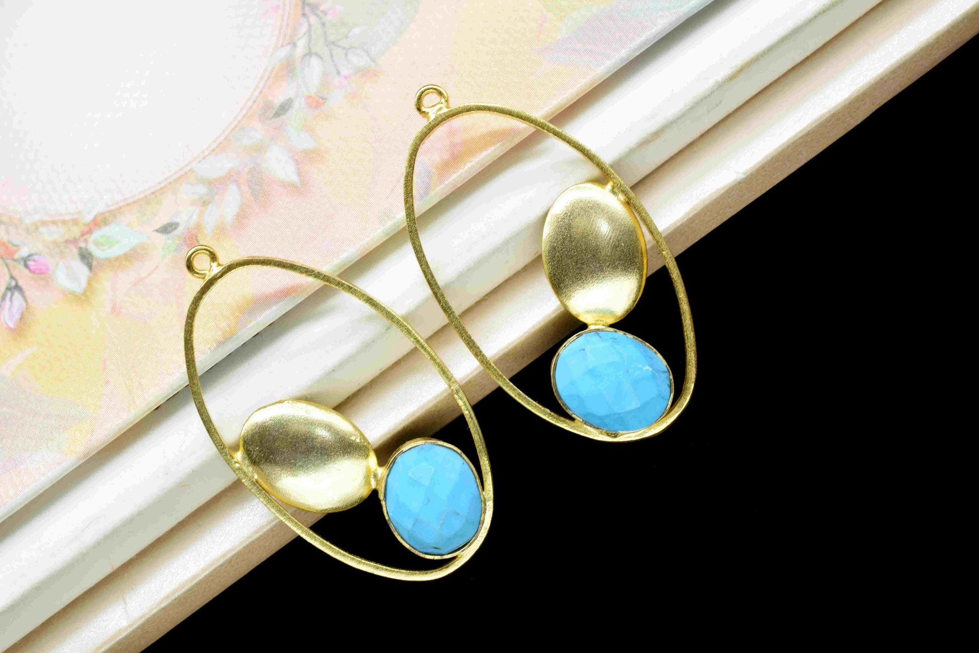 .Copper Turquoise Gemstone Oval Shape Pendant, Single Bail Pendant, Turquoise Pendant, Faceted Turquoise, Gemstone Charm Jewellery, Finding Jewellery