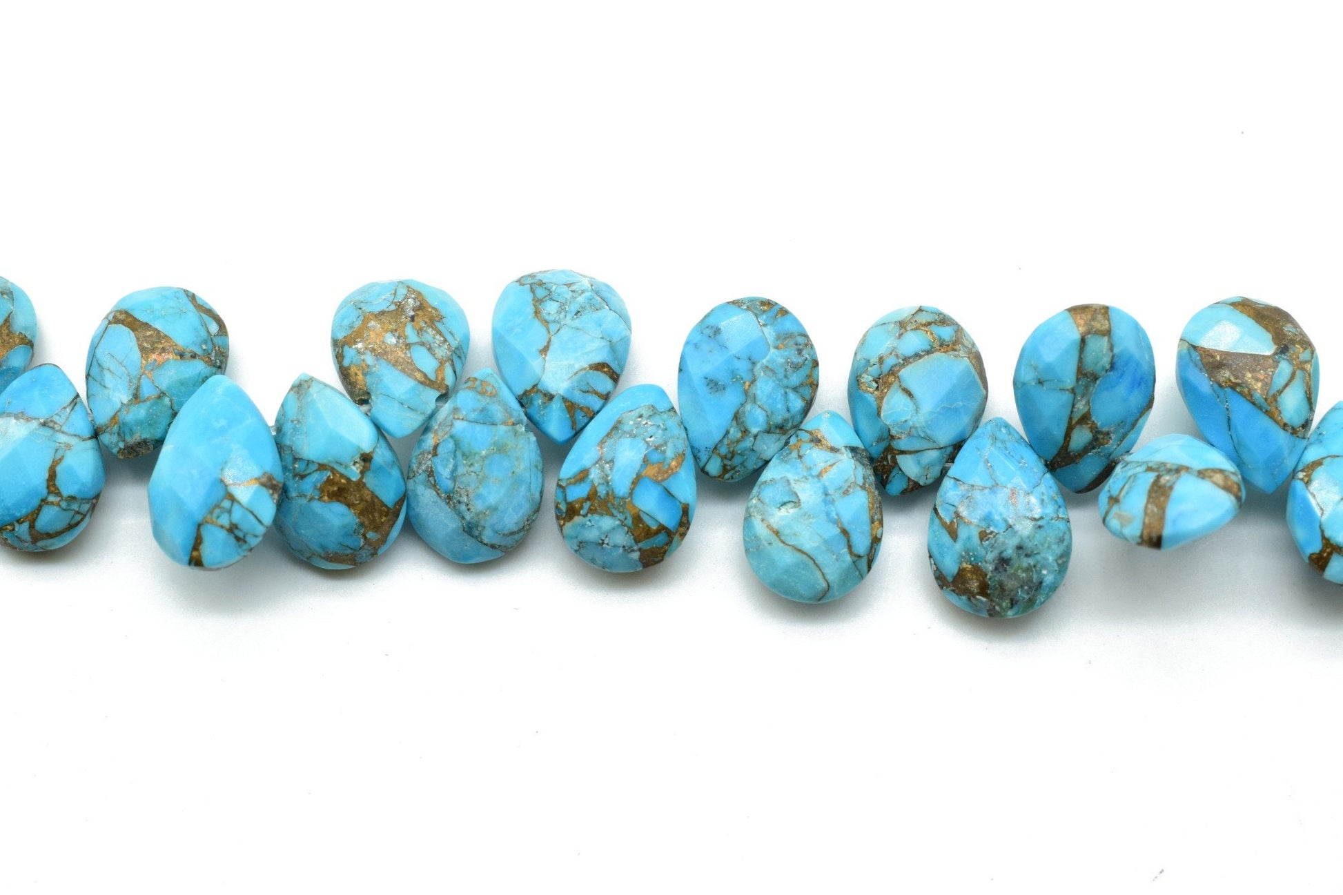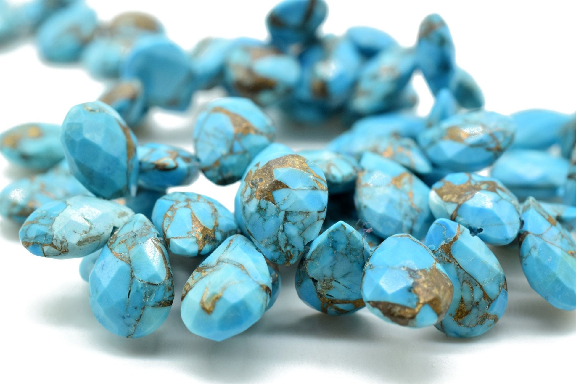 Copper Turquoise Teardrop 7x10mm Briolettes,Turquoise side drilled Briolette,Turquoise Handmade Briolette,Turquoise Teardop briolettes,jewel
