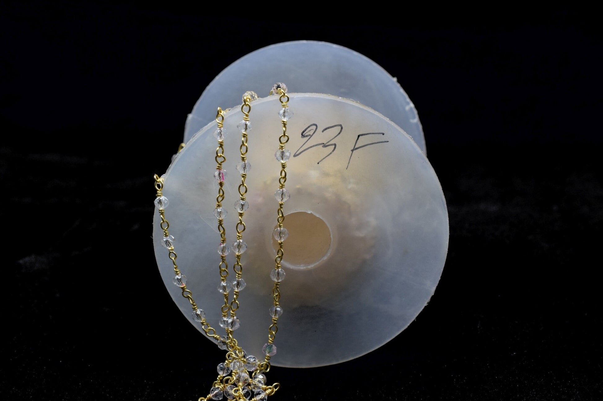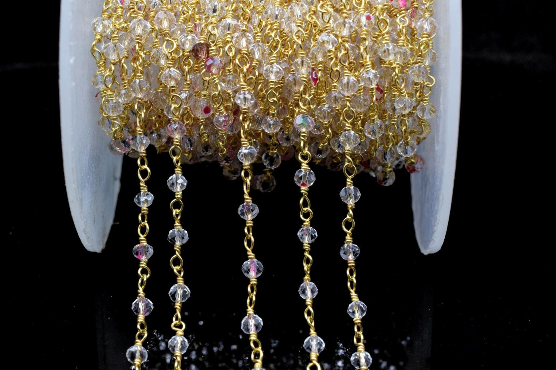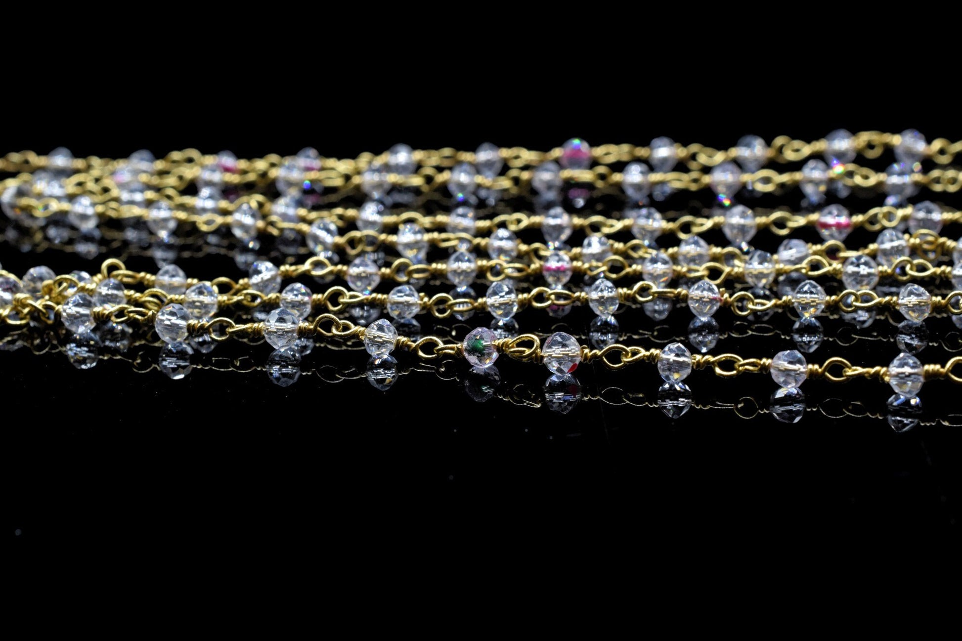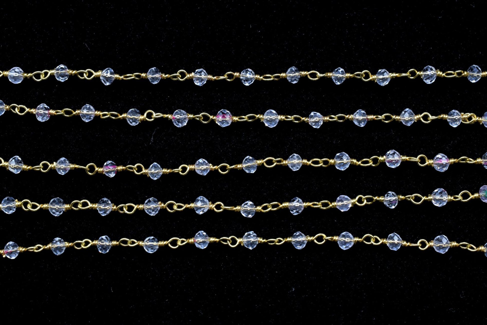 Crystal Quartz 3mm Beaded Chain,Rosary,Crystal Quartz Wire Wrap Chain,Crystal Quartz Brass chain Jewelry Making Chain,Crystal Quartz Rosary