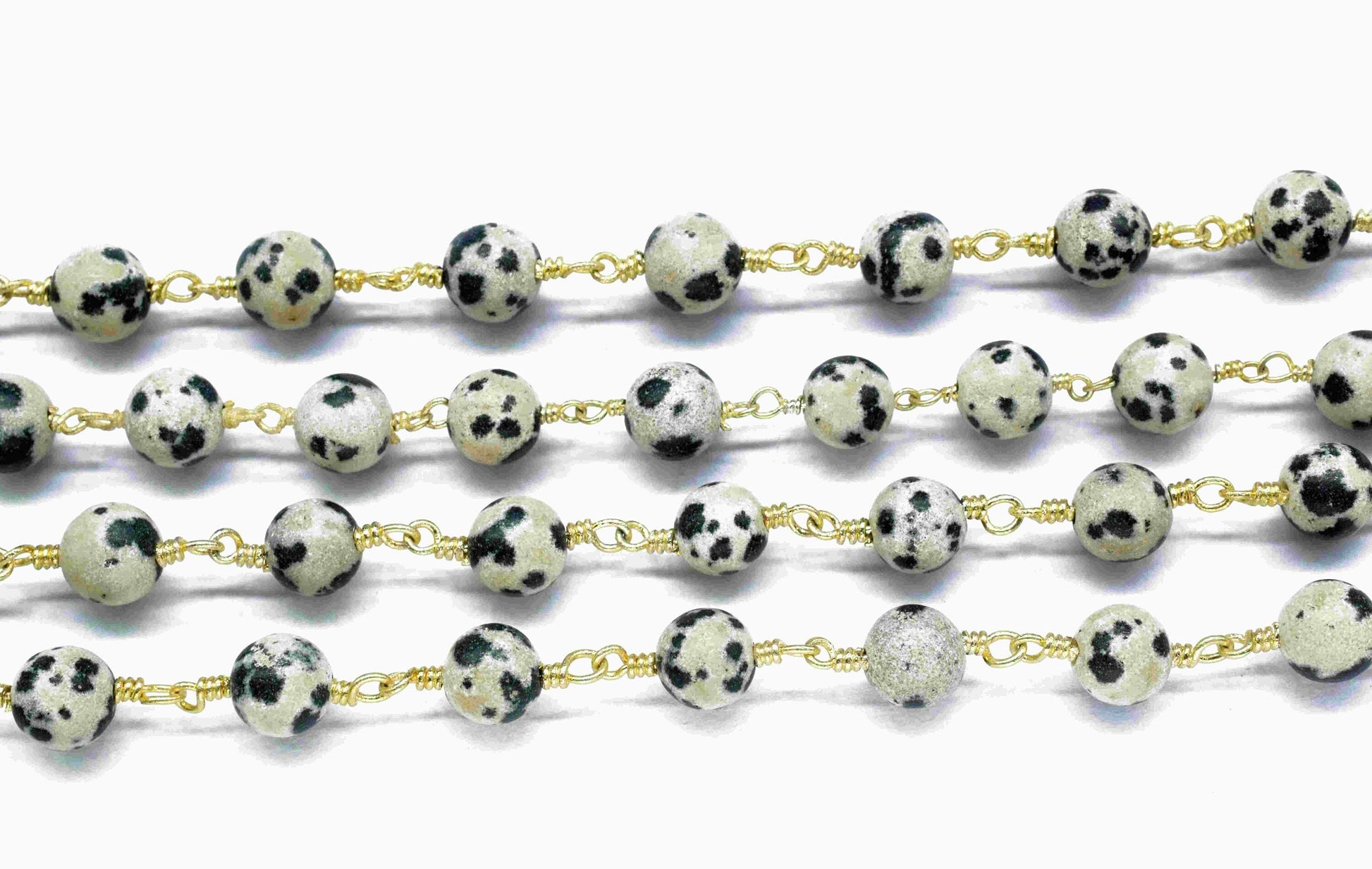 Dalmatian jasper 6mm Round Smooth Chain,Gemstone Beaded Rosary Chain,Beads Rosary chain Necklace,Dalmatian jasper Wire Wrapped Rosary Chain