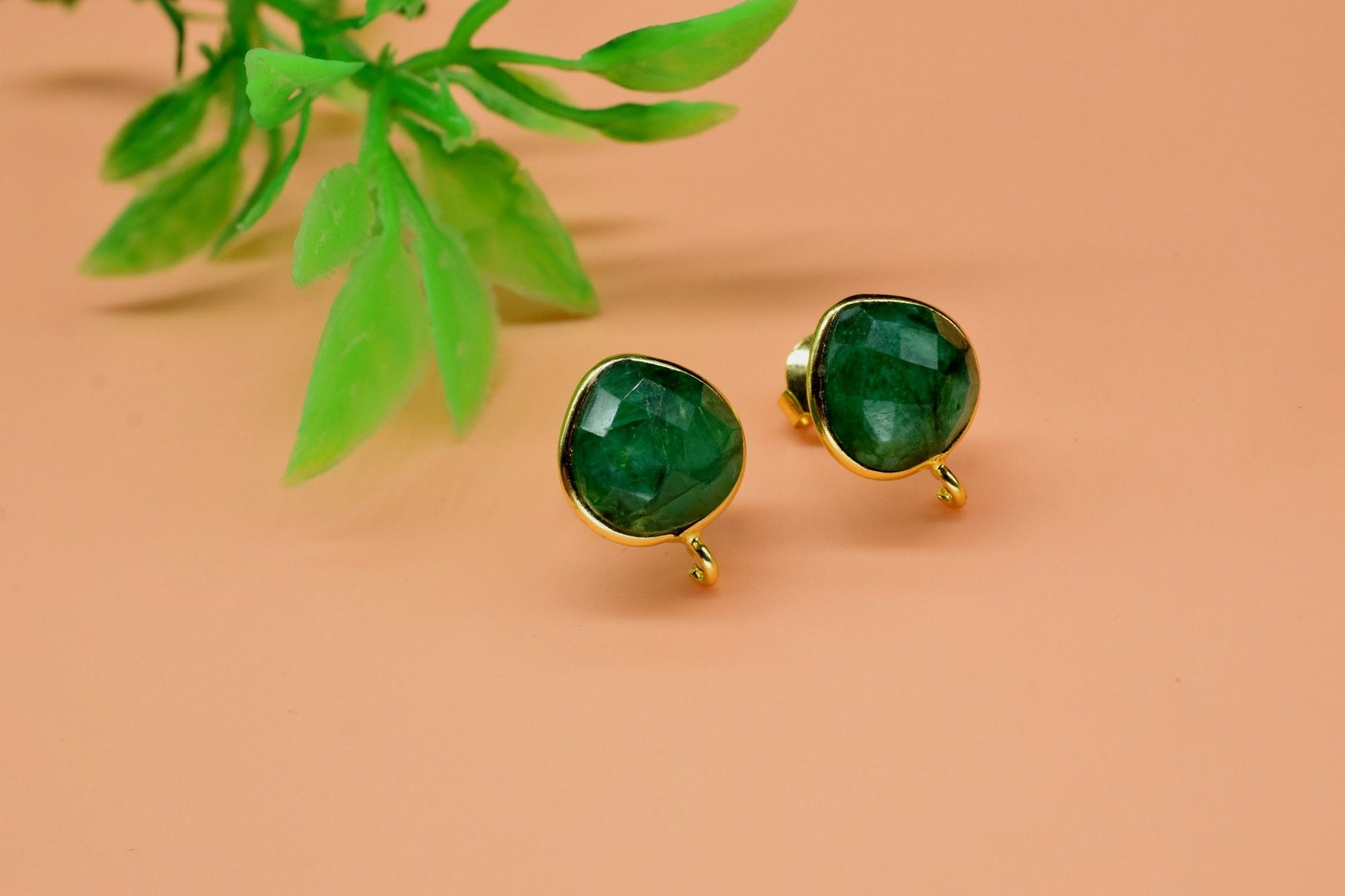 Emerald 10mm Heart shape Earring Connector,Jewelry Making Supply,Emerald connector post stud,Gold Plated Earring Connector,Emerald Earring