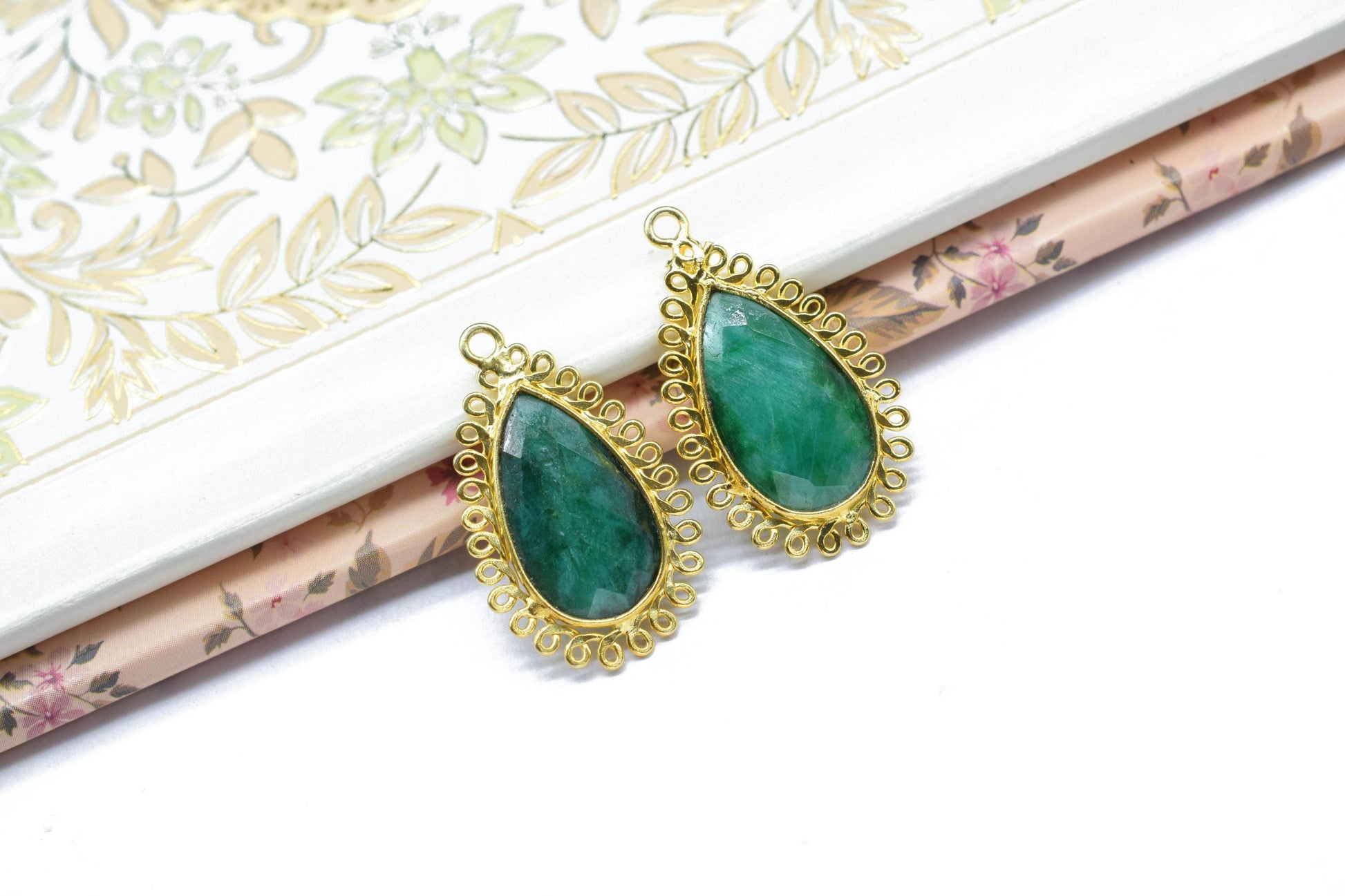 Emerald 12x20mm Teardrop Bezel Charms,Gemstone Brass Component,Wholesale Jewelry,Single Bail Pendant,Handmade Jewellery Connectors,Gift