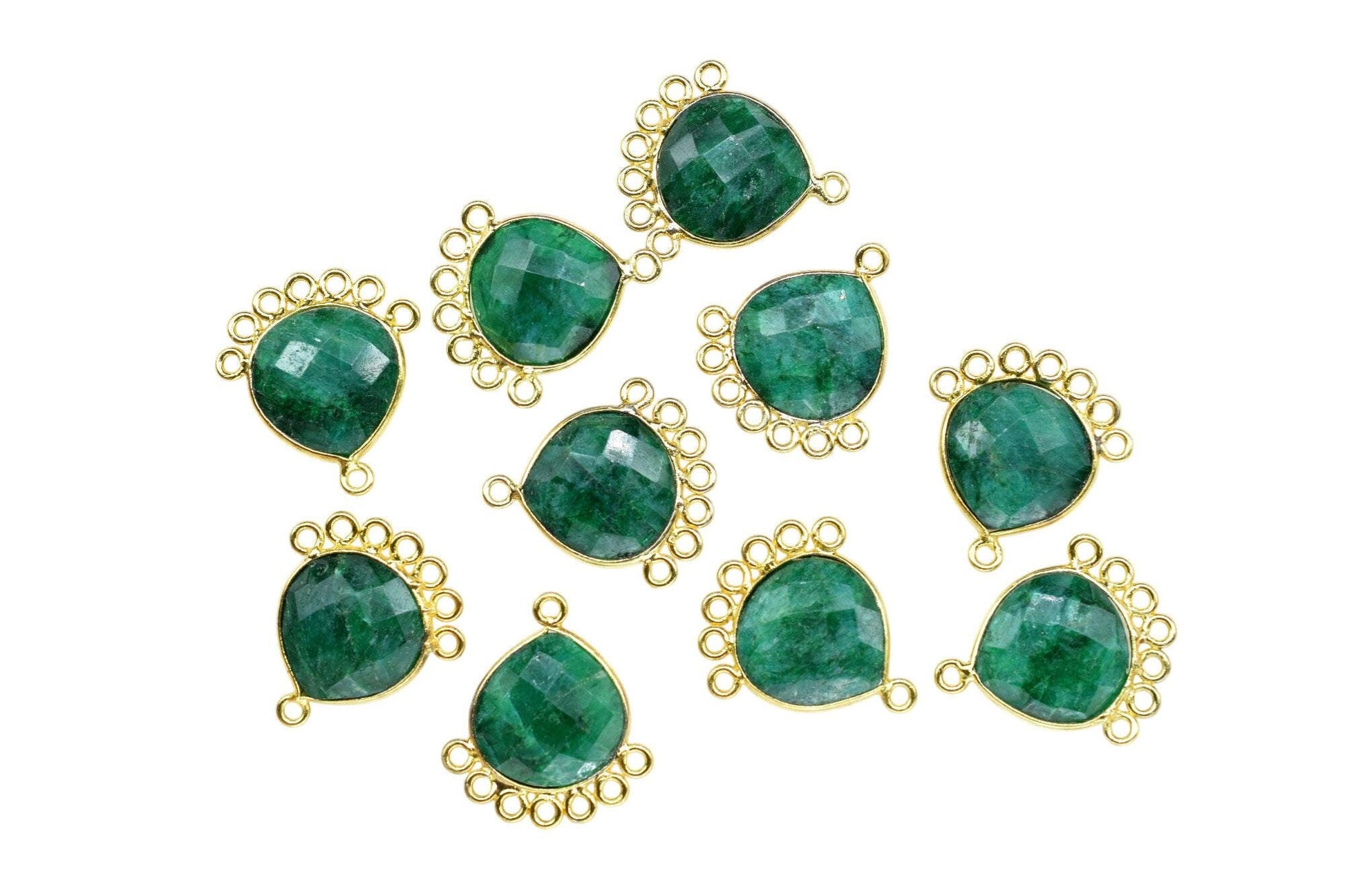 Emerald 14mm Heart Bezel Charm/Charms Connector/Handmade Jewellery Connectors/Gemstone Brass Component/Women Jewelry/B'day Gift