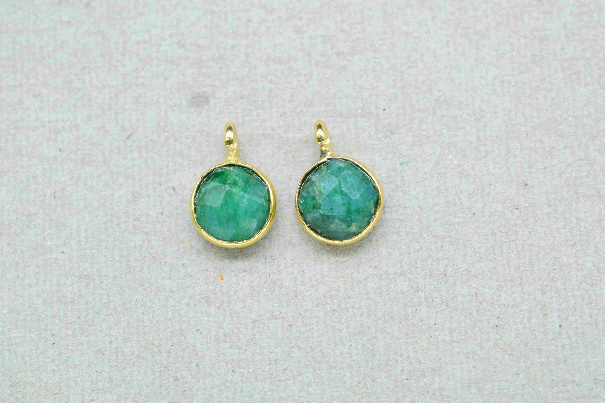.Emerald 6mm Round Earring Connector,Jewellery Making,Emerald connectors stud,Gold Plated Earring Connector,Gemstone Link Connector,Round Studs
