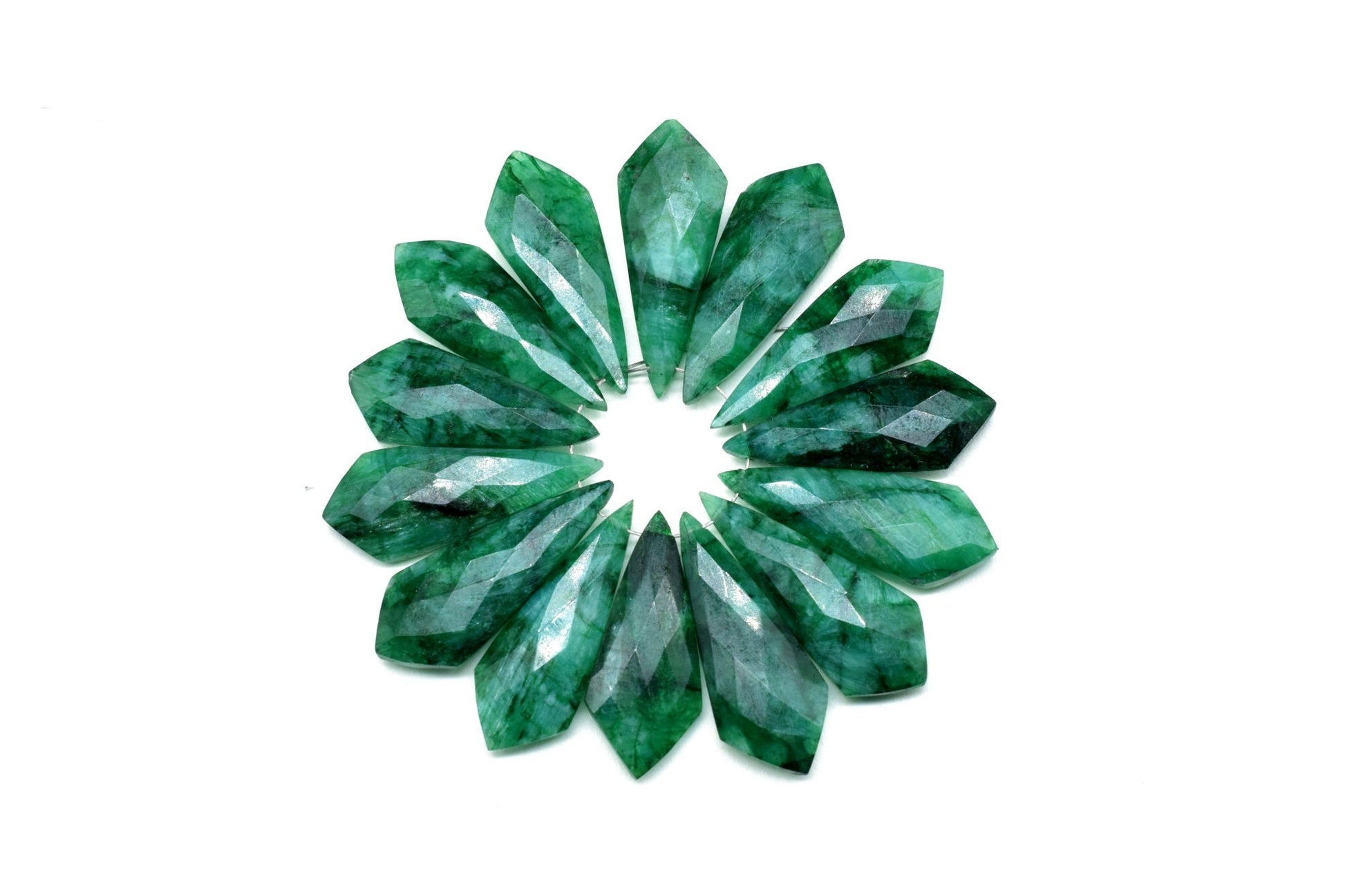 Emerald Faceted Pear Shape Briolettes,Emerald Long Pear Beads,12x27mm Fancy Briolettes,Gemstone Briolettes,Fancy Shape Briolettes,Emerald