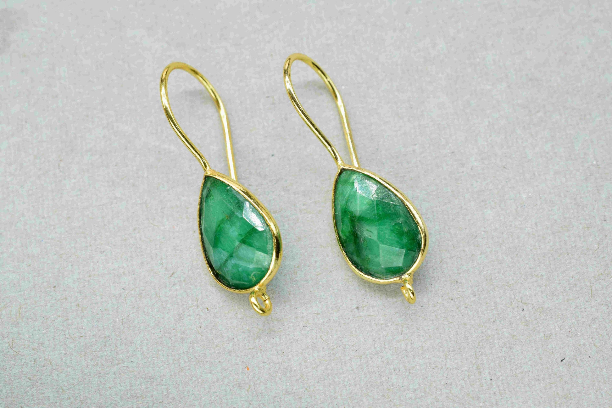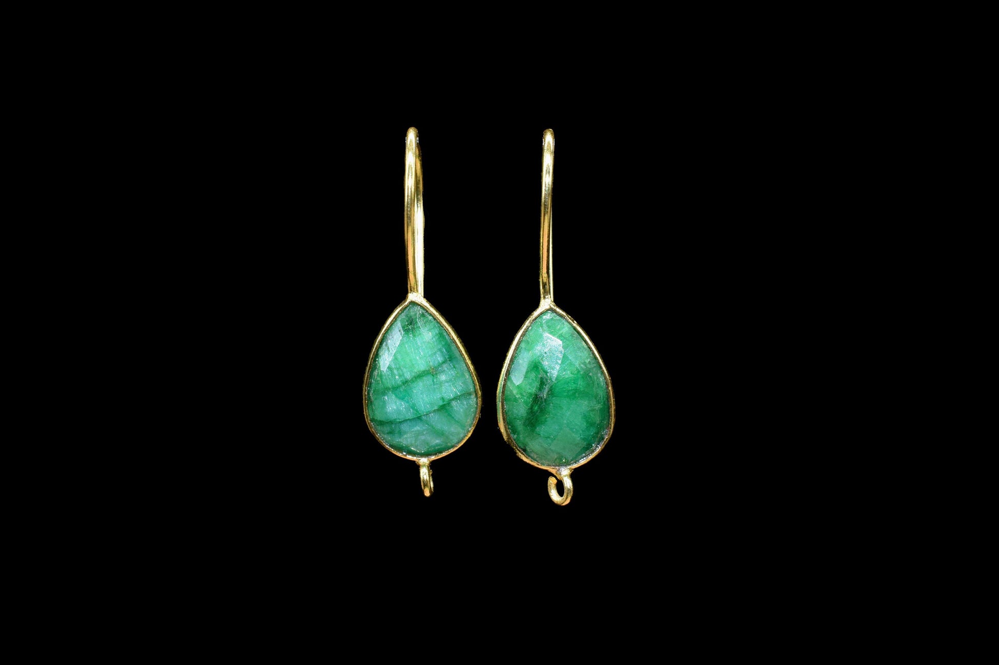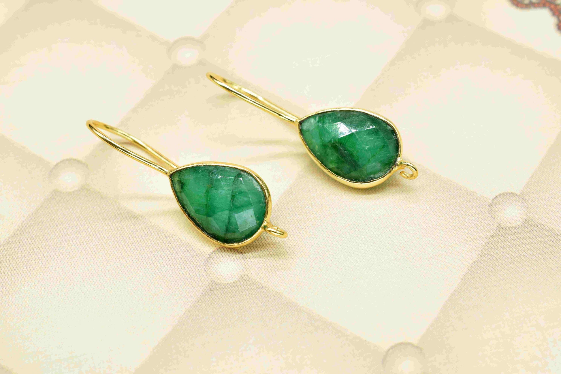 .Emerald Gemstone 9x13mm Component, Emerald Teardrop Shape Component, Gemstone Earring, Component Jewellery, Emerald Gemstone Connector,Emerald Gift
