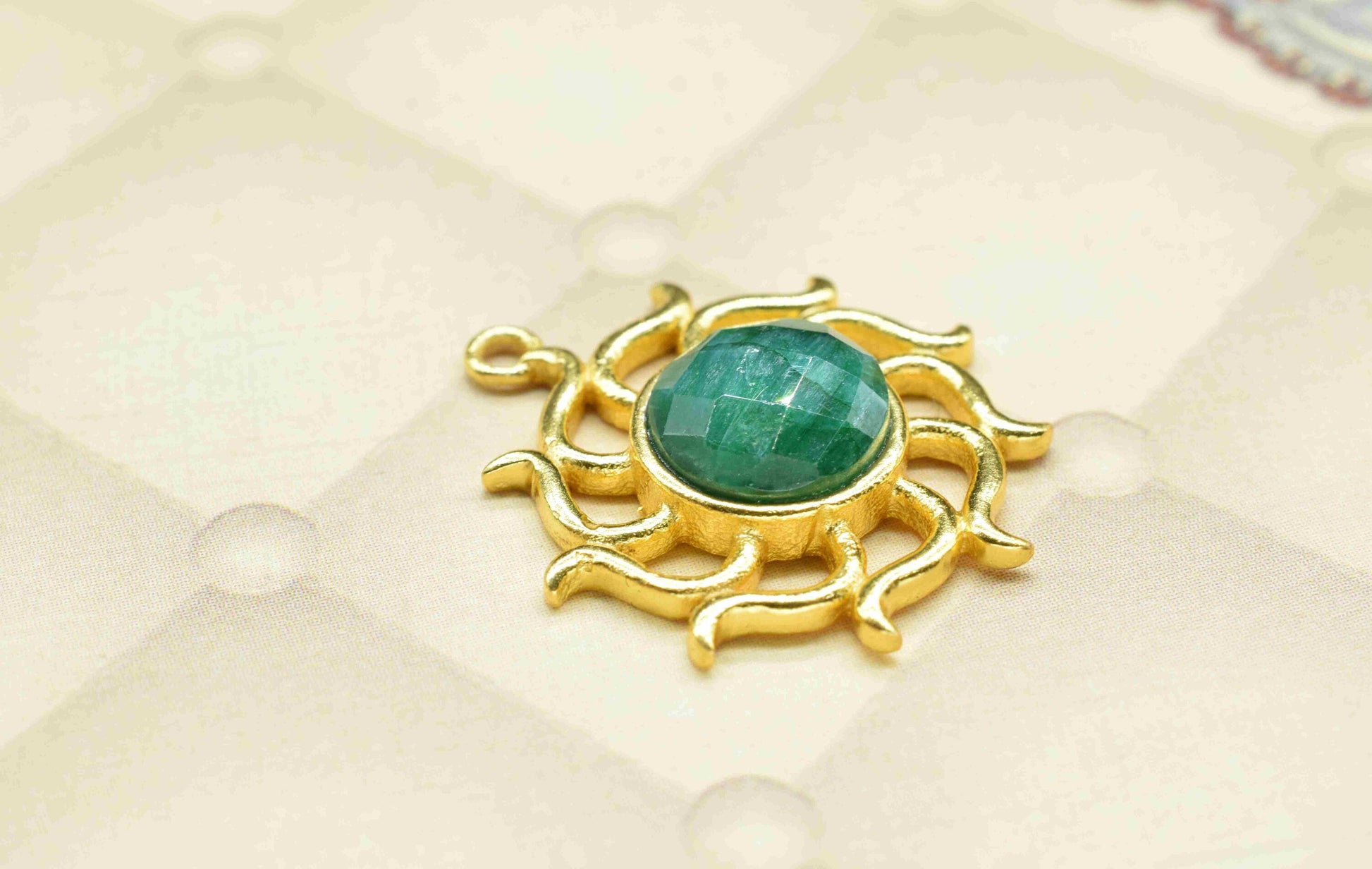 .Emerald Gemstone Component, Single Bail Charm , Emerald Connector Pendant , Gold Plated Connectors , Earring Component , B'day Gift