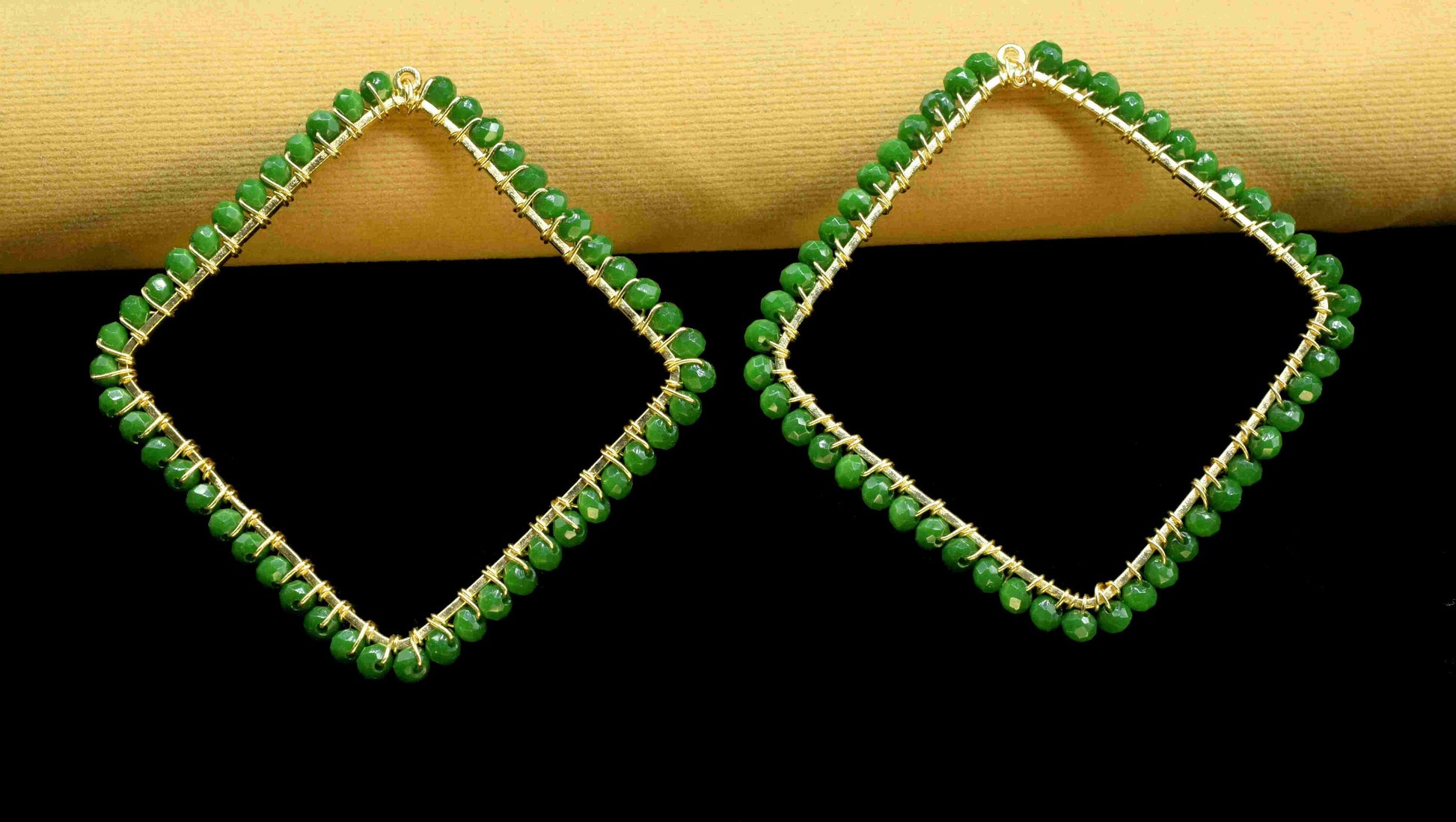 .Emerald Quartz Beaded Earring Connector,Gemstone Wire Wrapped Components,Dangle Earring Component,Finding Necklace,Pendant Jewelry Connector