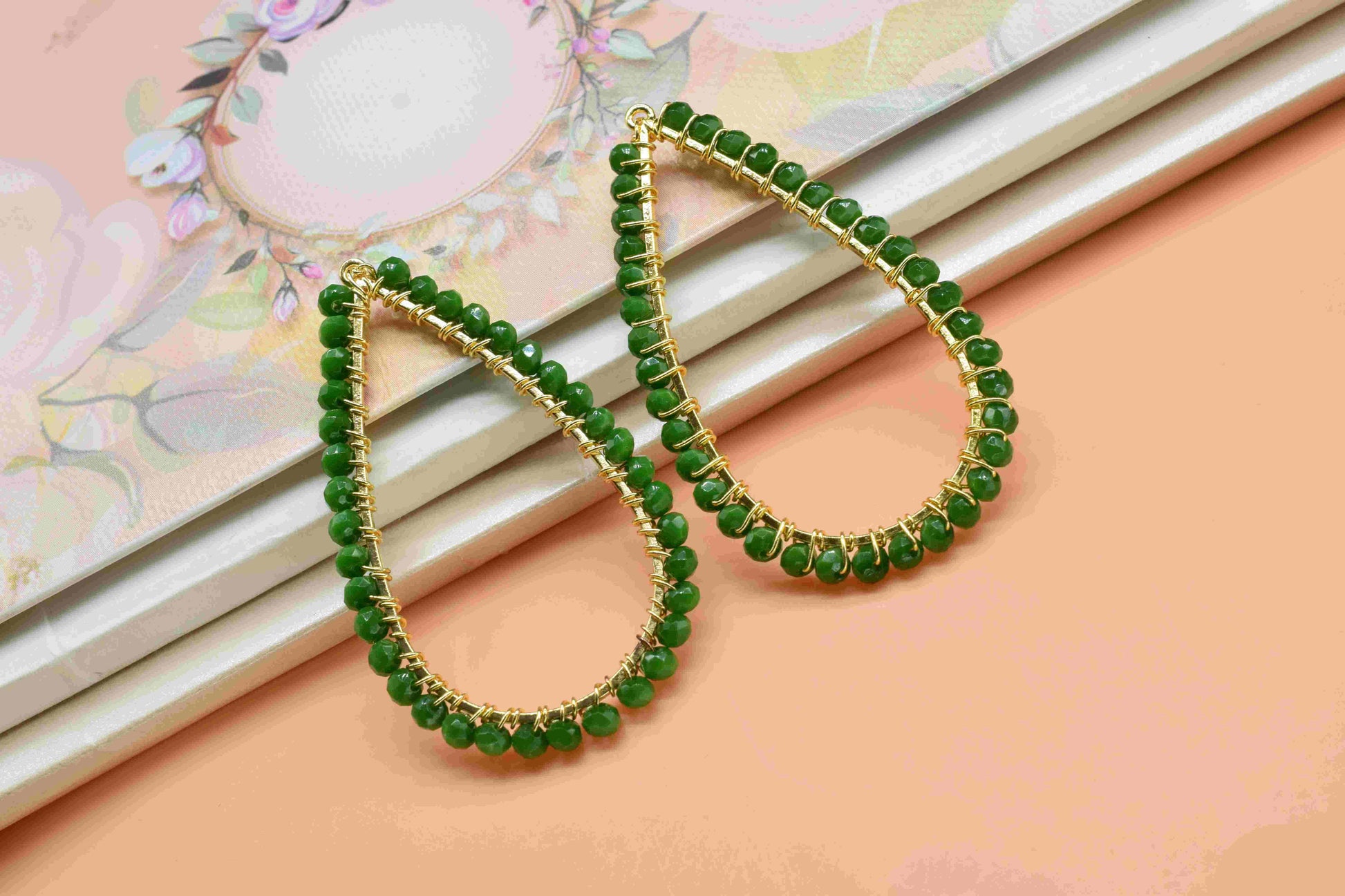 .Emerald Quartz Beaded Earring Connector, Gemstone Wire Wrapped Components,Pendant Jewelry Connector,Finding Necklace,Emerald Beaded Jewelry,
