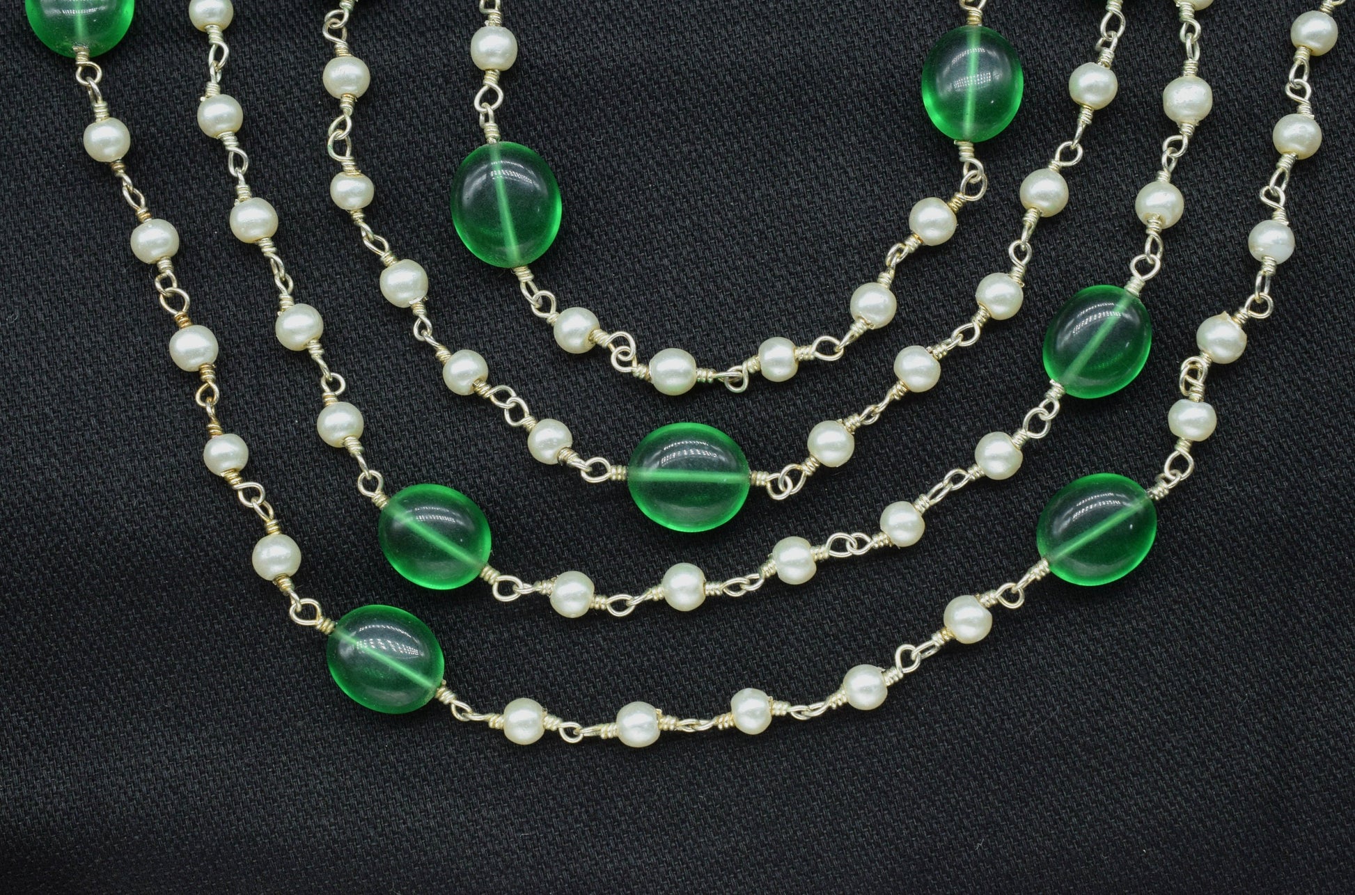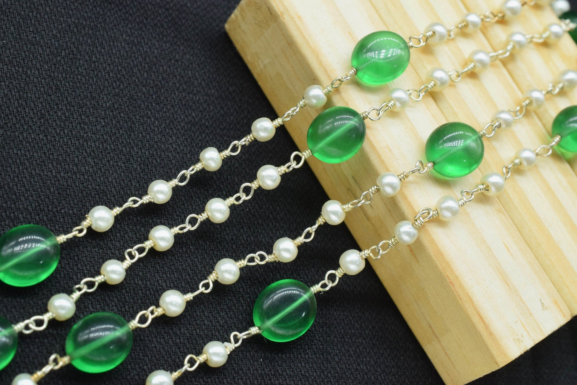 Emerald Quartz Oval Shape Rosary Chain,Pearl Beaded Rosary Chain,Finding Wire Wrap Necklace Chain,Pearl Rosary Chain,Jewelry Making Gift For