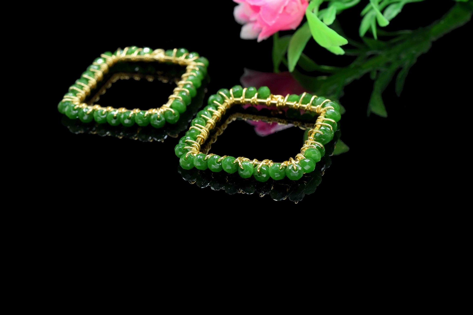 .Emerald Quartz Wire Wrapped Dangle Connector,Gemstone Component,Handmade Earring,Finding Necklace Component Jewellery,Beaded Earring Connector