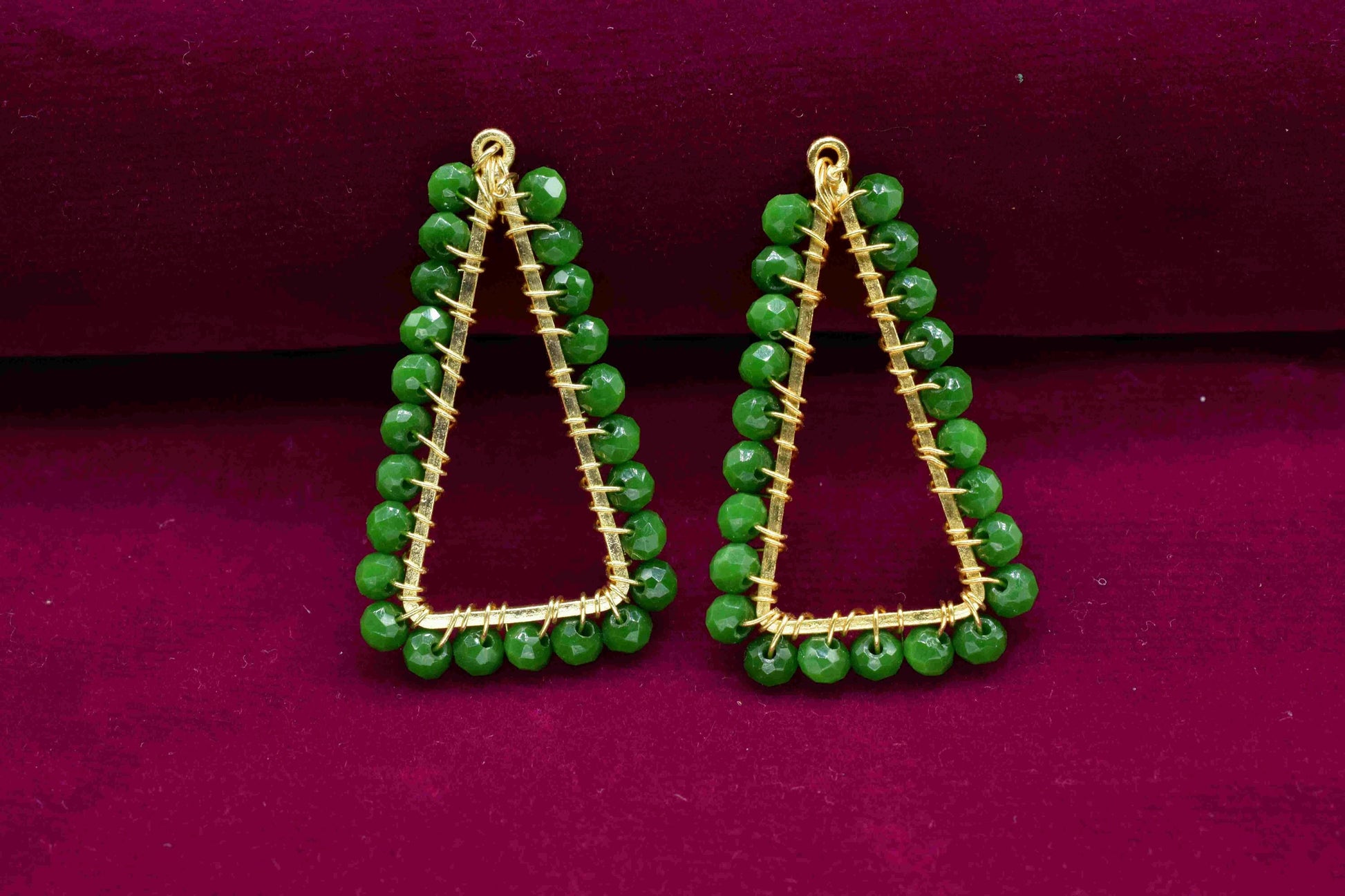 Emerald Quartz Wire Wrapped Dangle Earring,Gemstone Component,Handmade Connector,Finding Necklace,Component Jewelry,Beads Triangle Connector