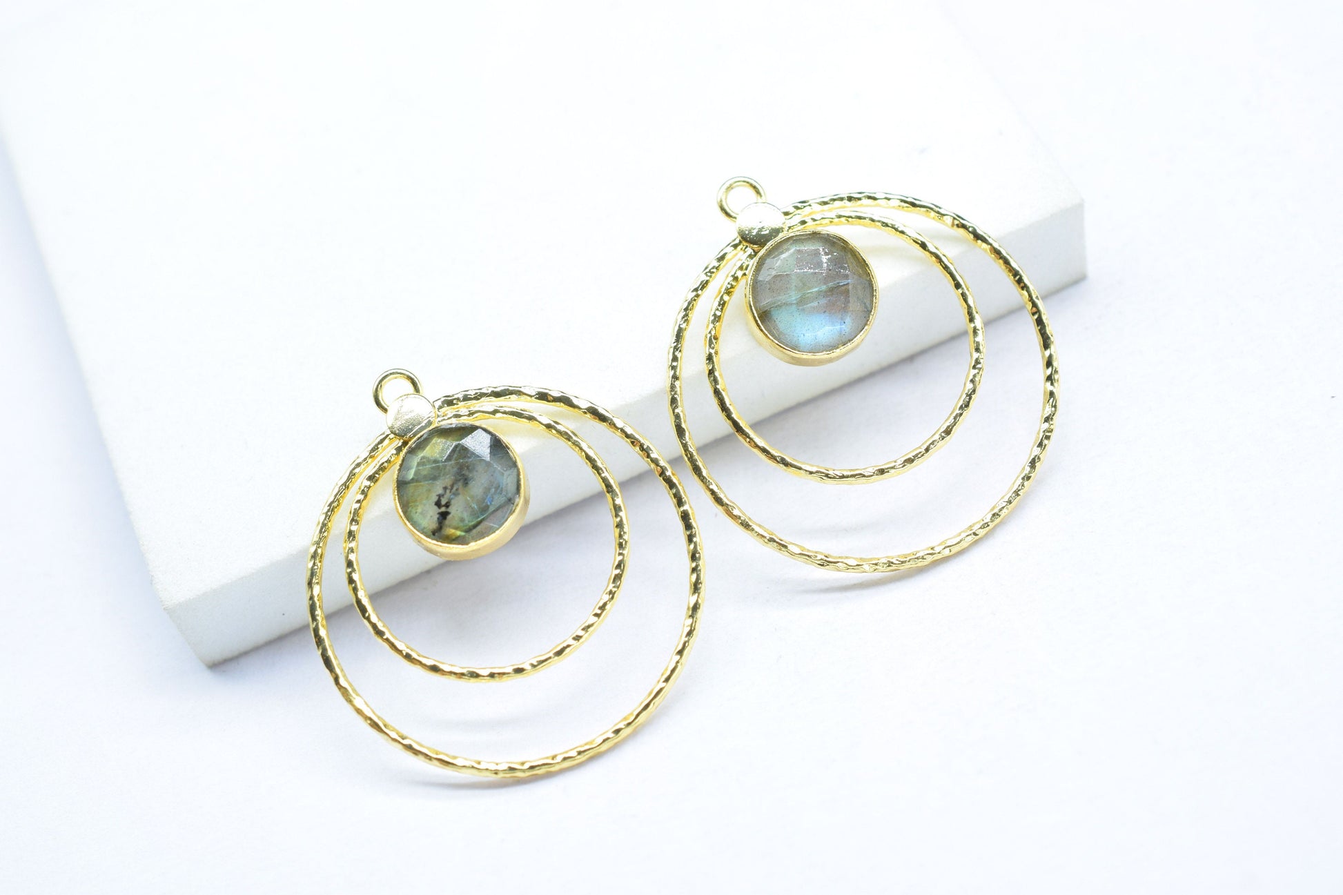Fleshy Labradorite Round Faceted Bezel Connector,designer Bezel Connectory,Grey Gemstone Pendant,Jewelry Making Supply,Labradorite Earrings