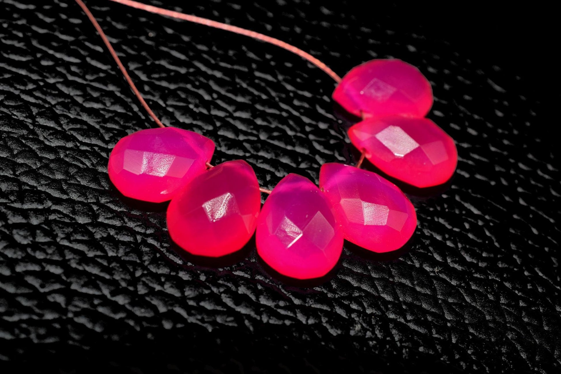 Fushia color Teardrop 7x10mm Briolettes,Pink chalcedony Side drilled Briolette,Handmade Briolette,Hot Pink Chalcedony Teardop briolettes