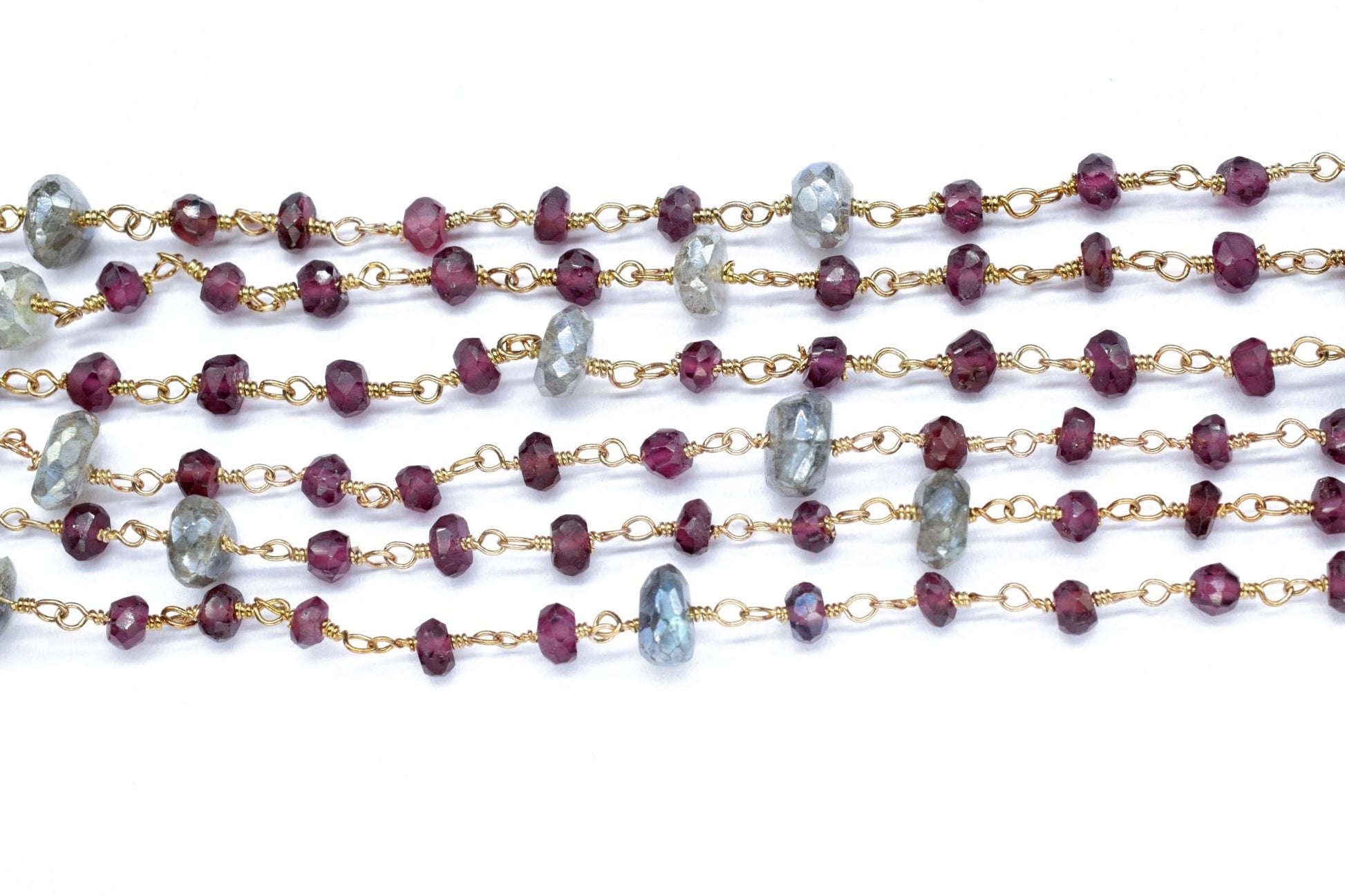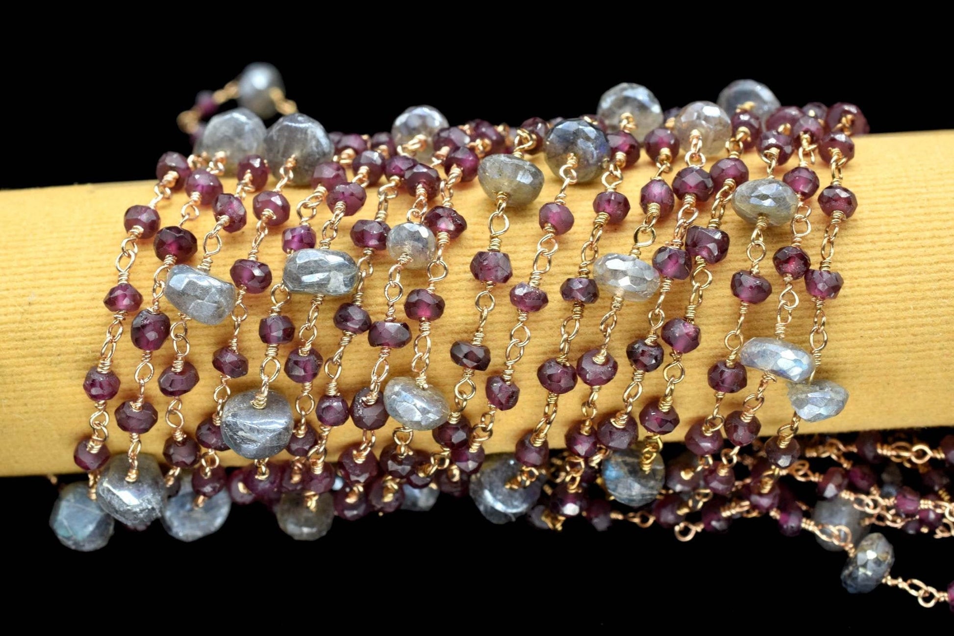 Garnet 3mm Beaded Chain,labradorite Rosary,Gold Plated Wire Wrap Chain,Brass chain,Jewelry Making Chain,Rosary chain,bigger beaded rosary