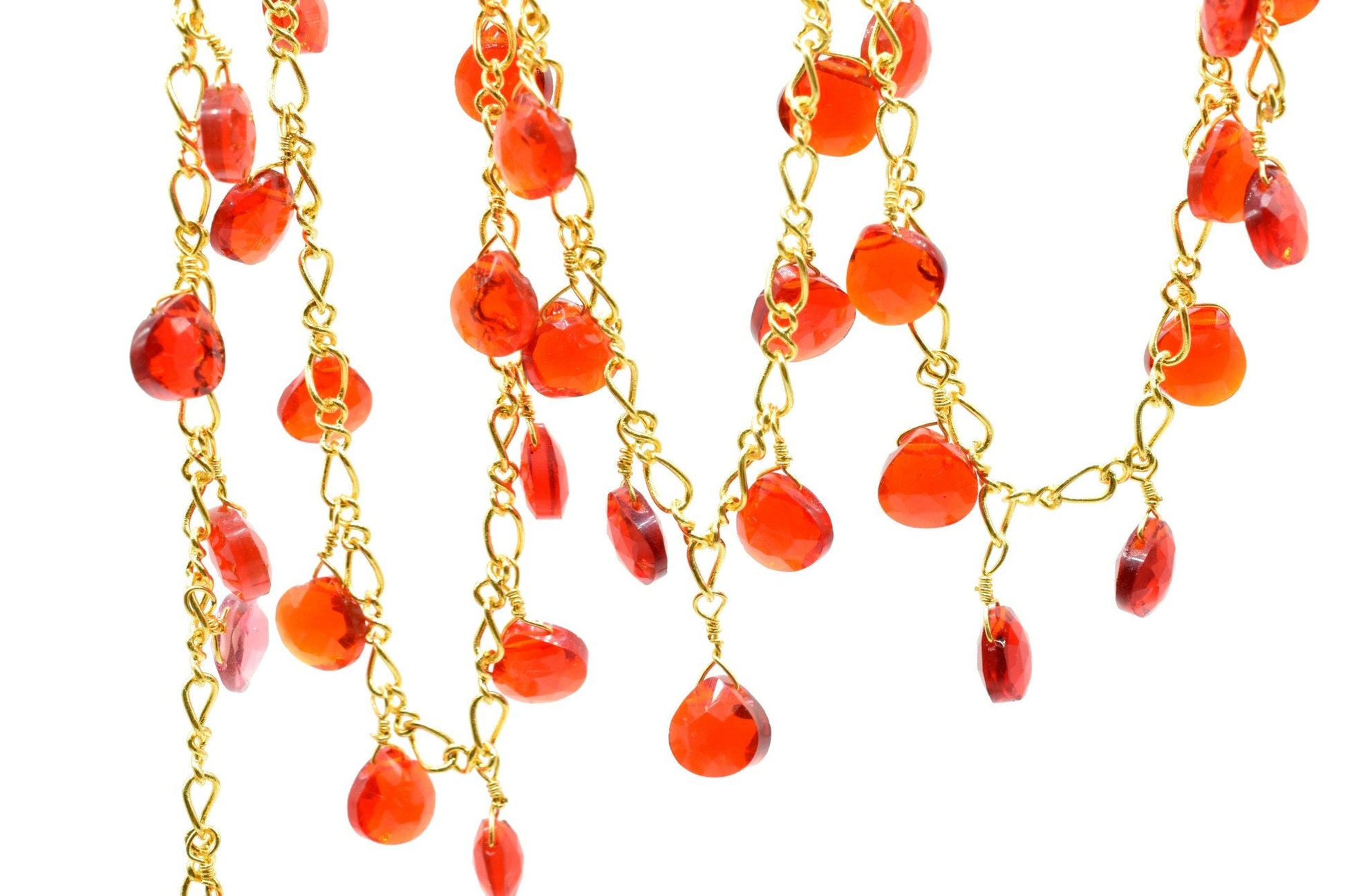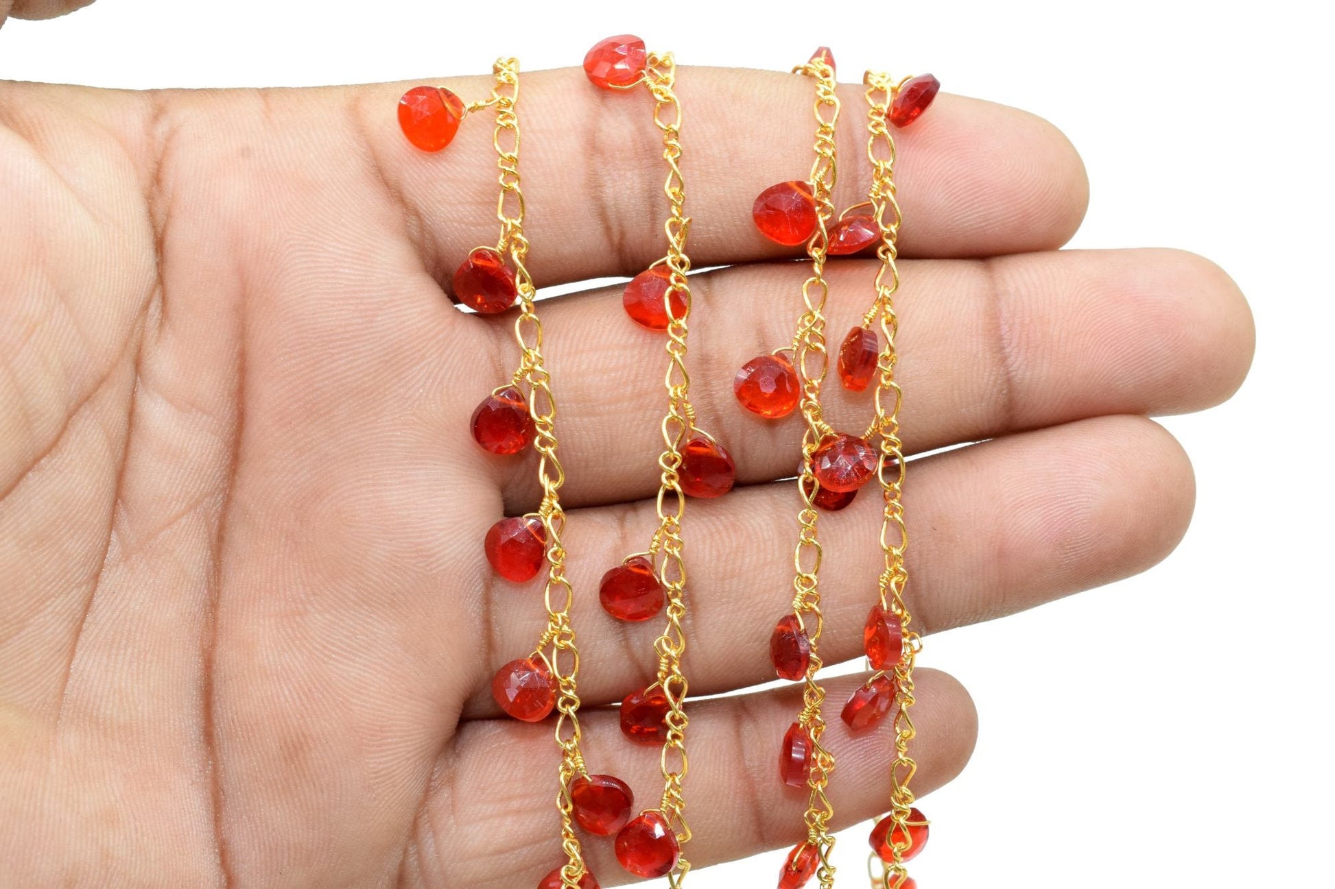 Garnet 6mm Heart shape Briolette Chain,Garnet Wire Wrapped chain,Garnet Gemstone Bead,Garnet Faceted Rosary Chain,Gems Rosary Style,Garnet
