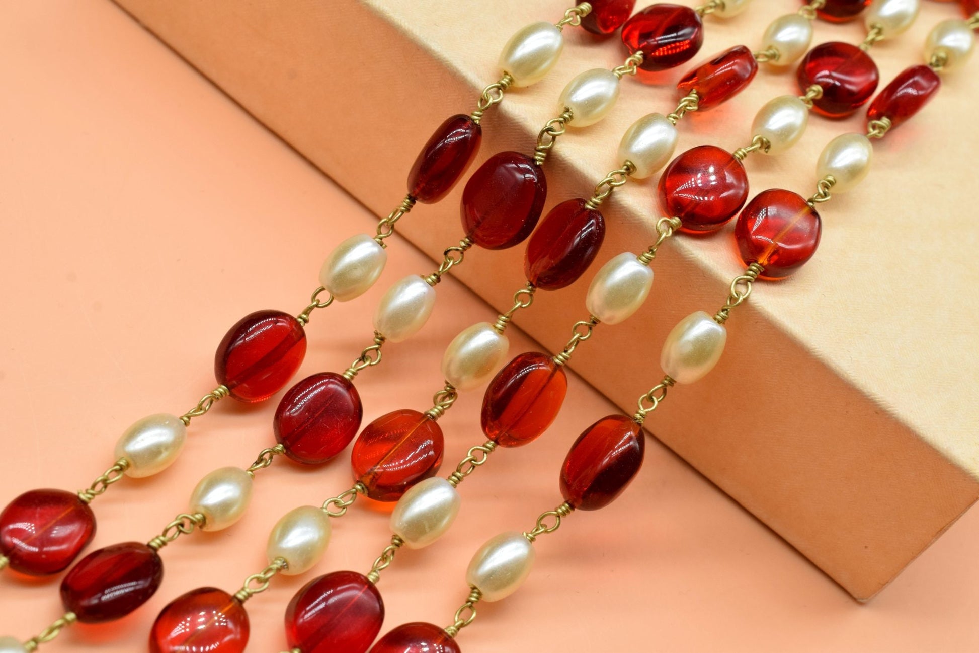 Garnet and Freshwater Big Pearl Rosary Chain,18K Gold Plated Oval Shape Beads,Diy Jewelry Making Beaded Chain By Foot For Necklace Wire Wrap
