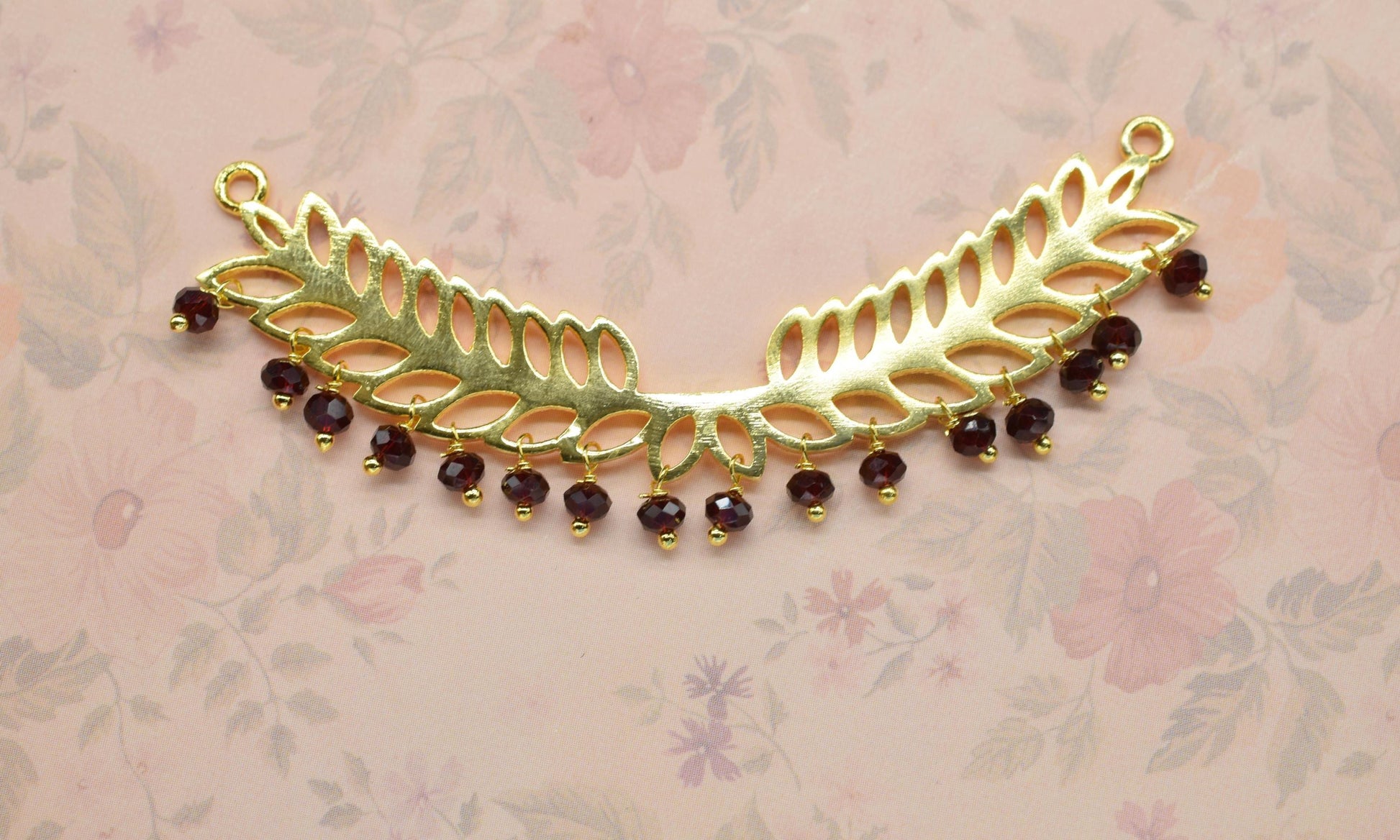 Garnet Beads Dangle Charms,Wedding Hair Vine Connectors,Gemstone Leaf Pendant Necklace,Component Leaf Charms,Handmade jewelry,Gift