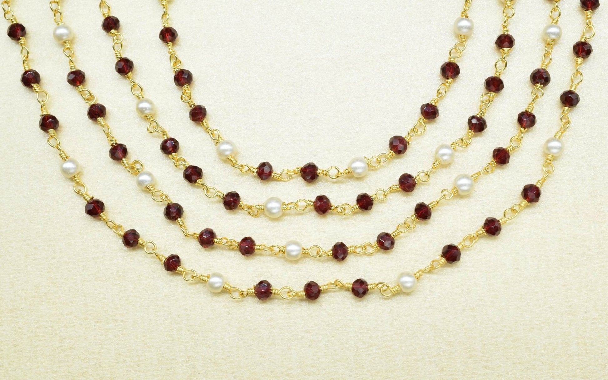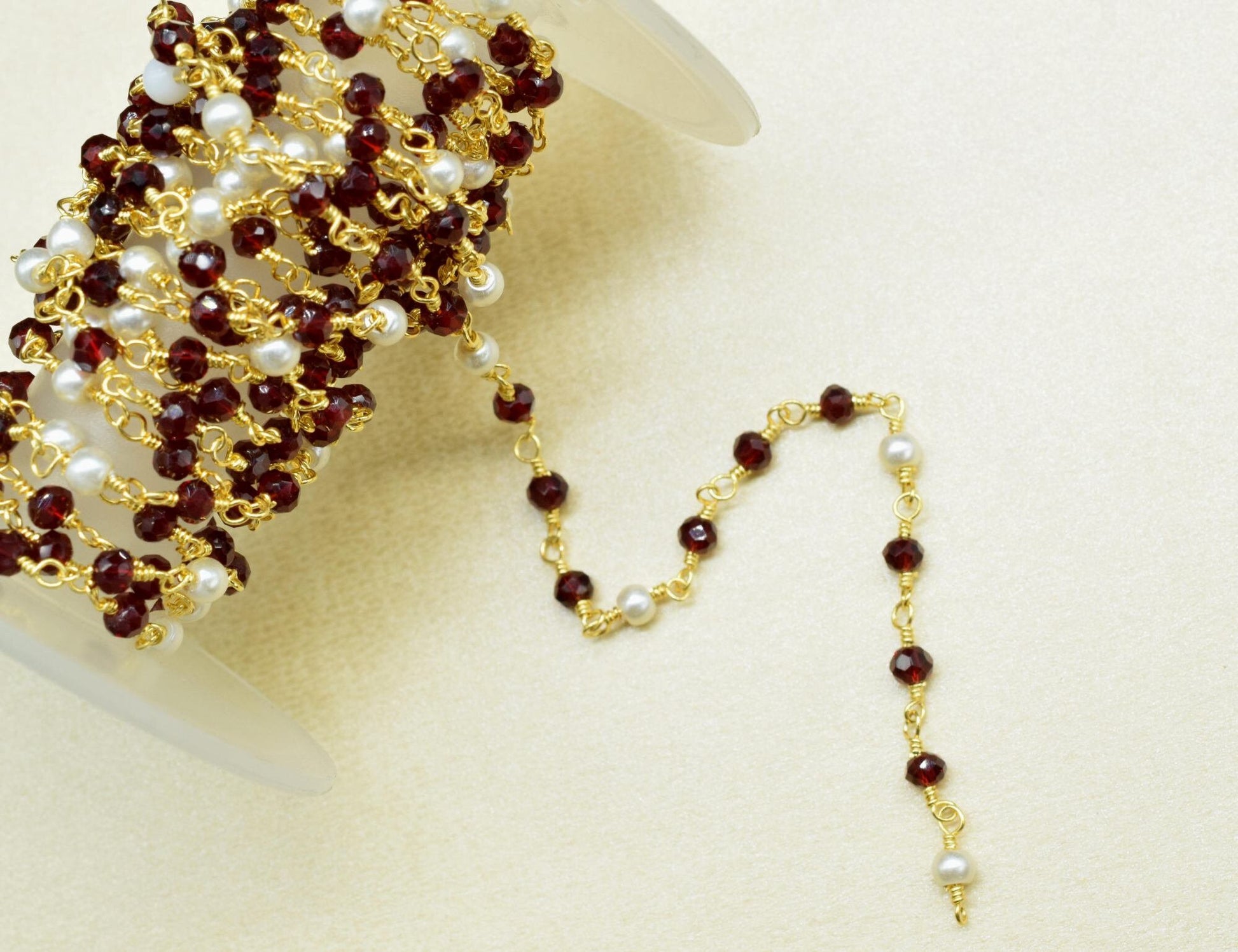 Garnet Hydro Faceted Rondelle Beaded Rosary Chain,Jewelery Making Craft,Finding Chain,Pearl Wire Wrap Rosary Chain,Gold Plated Rosary Chain